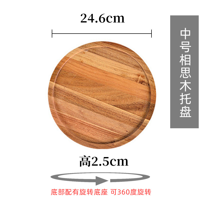 Color: 6-inch small size Acacia wooden tray [bottom rotatable]]
