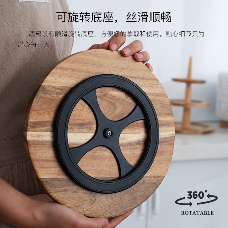 Color: 10-inch large acacia wooden tray [bottom rotatable]]