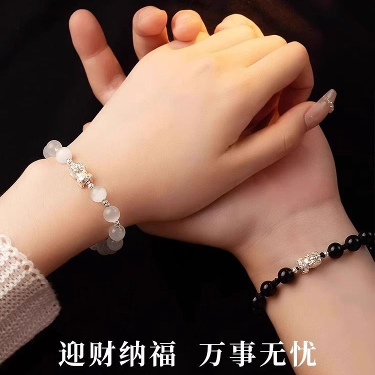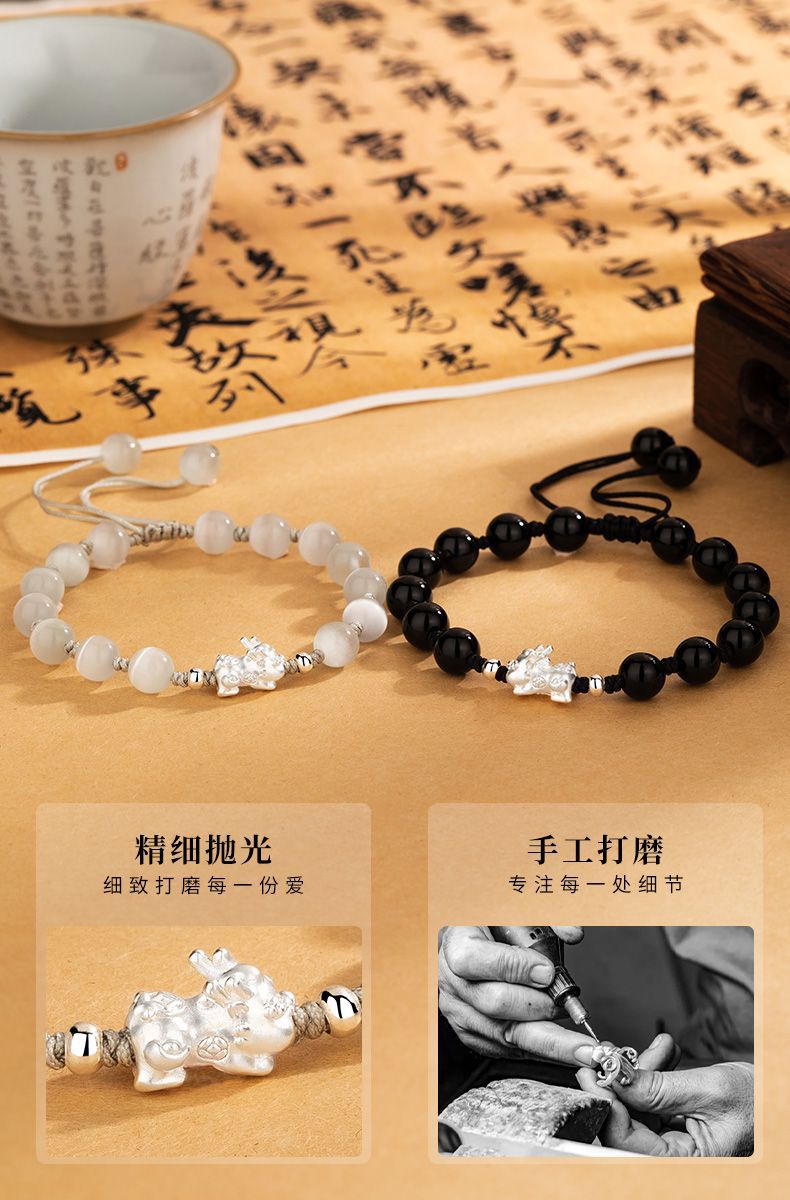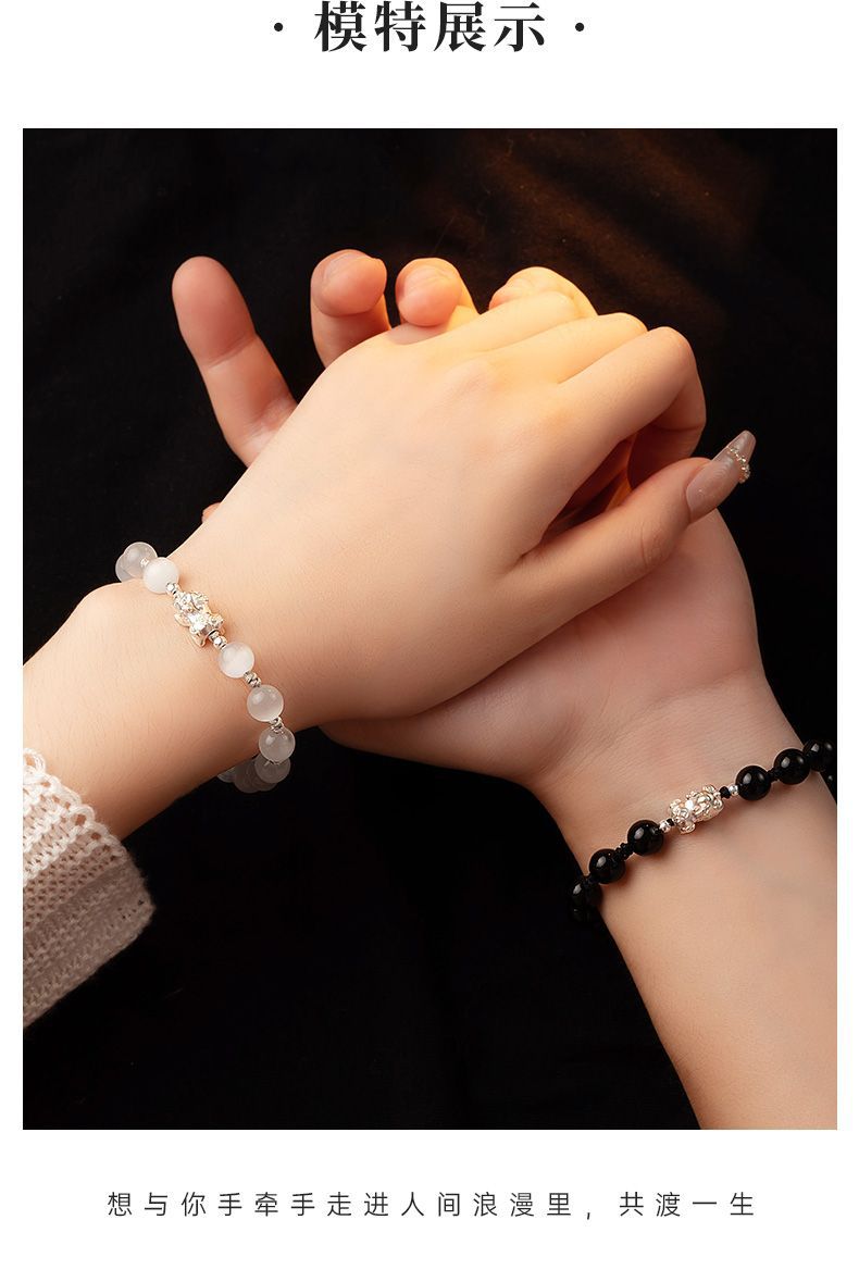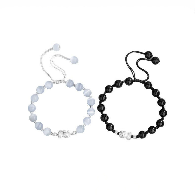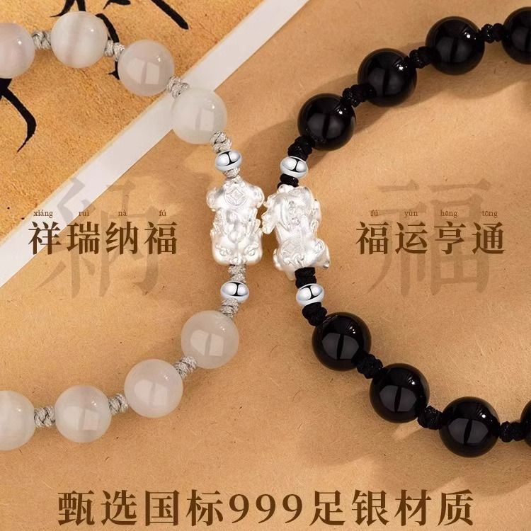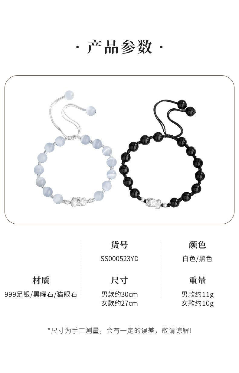 Sterling Silver Pi Xiu Cat's Eye Obsidian Bracelet Couple's Niche High-end Men's Beaded Birthday Gift Wholesale