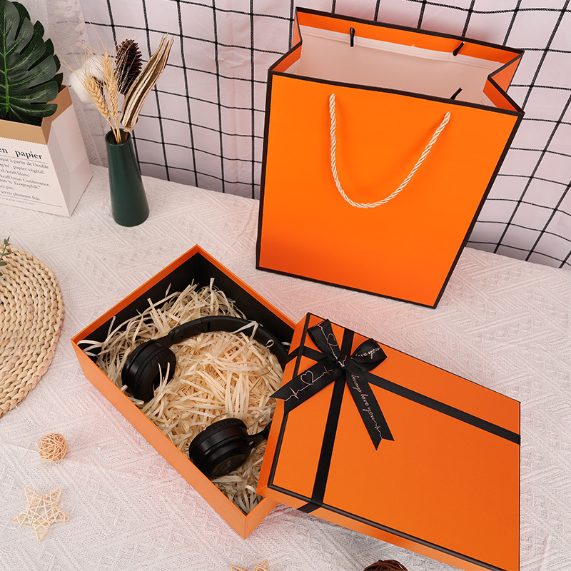 Specification model: Gift box-orange + gift bag (empty box with bow); 33*25.5*10cm can hold men's shoes, shirts and scarves