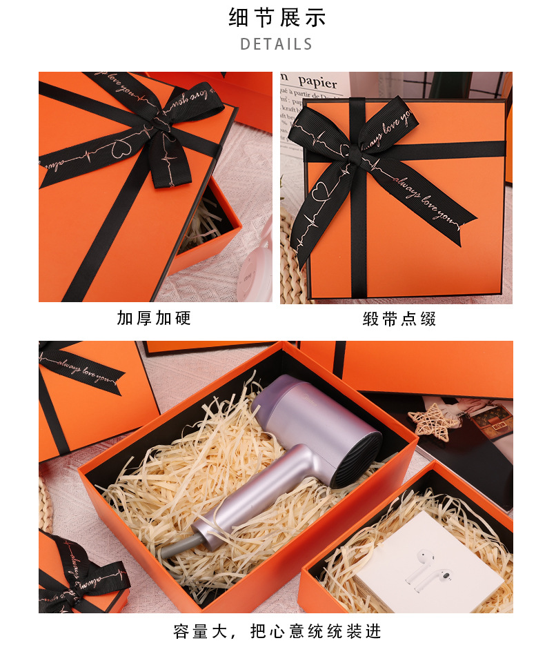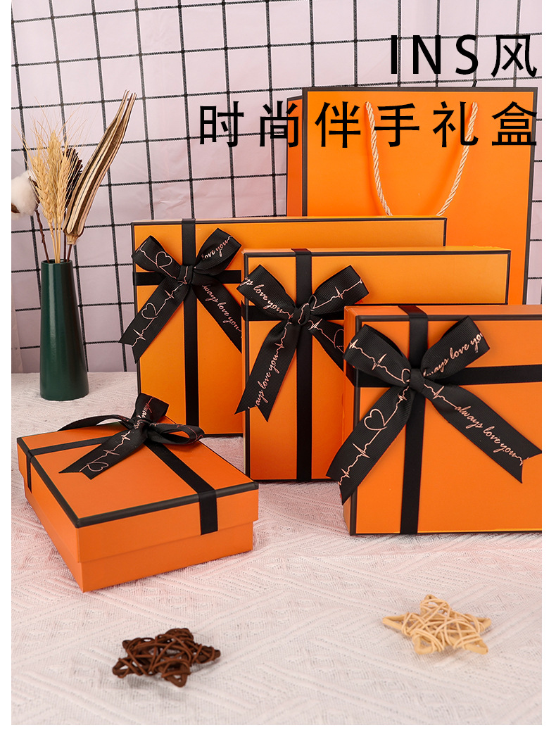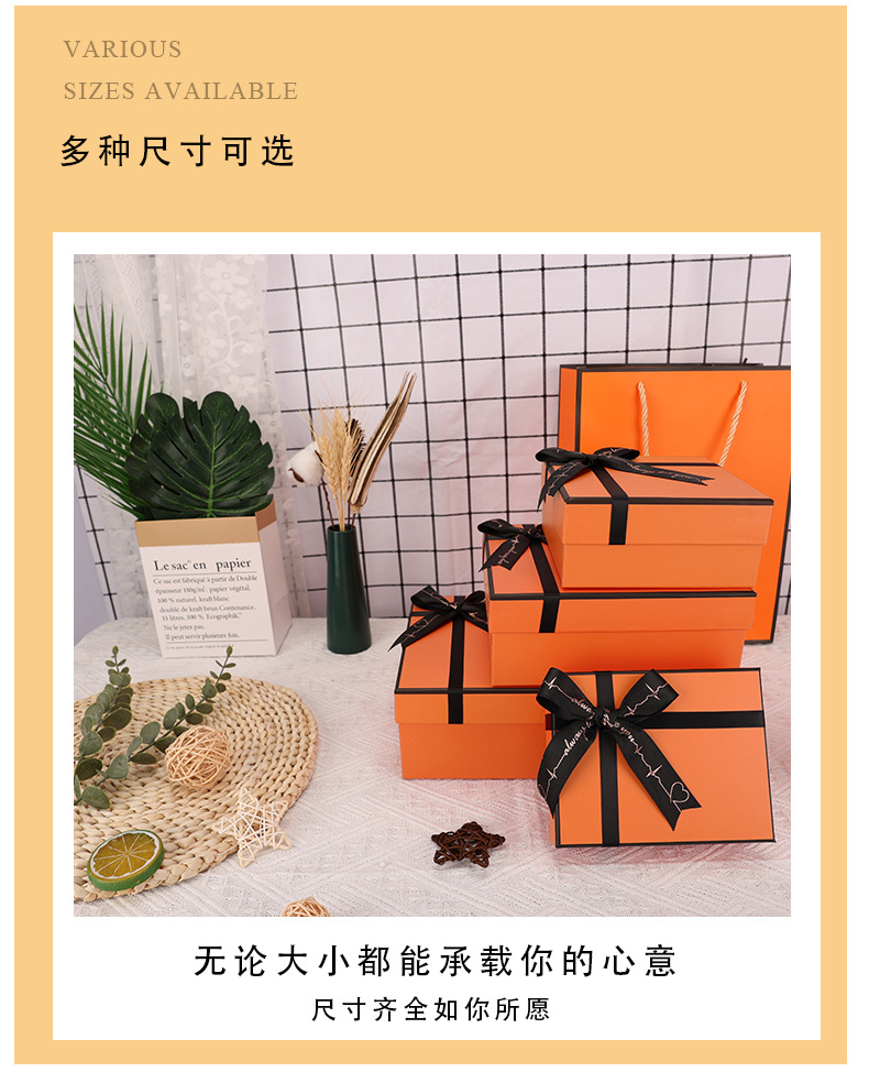 Specification model: Gift box-orange (empty box with bow); 33*25.5*10cm can hold men's shoes, shirts and scarves