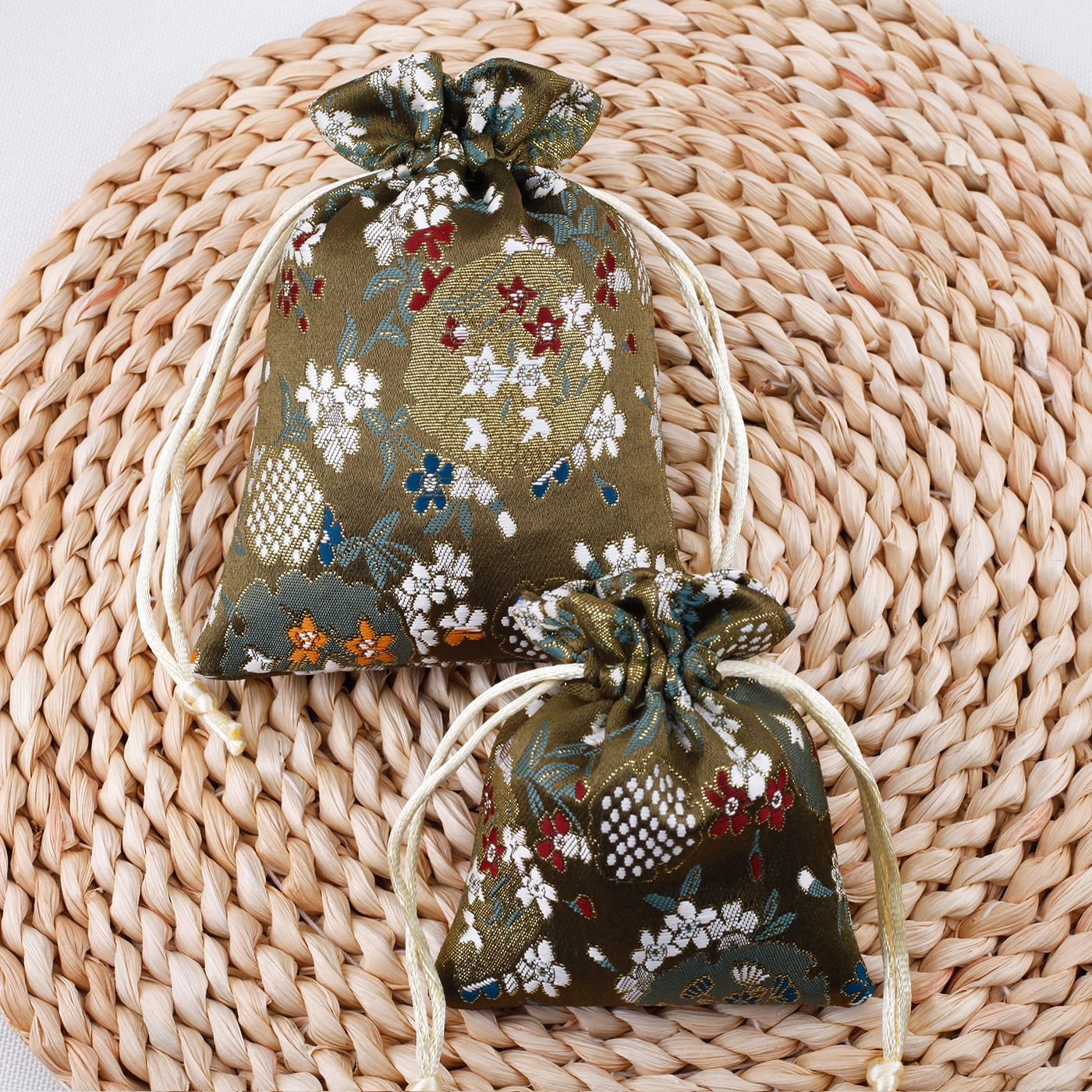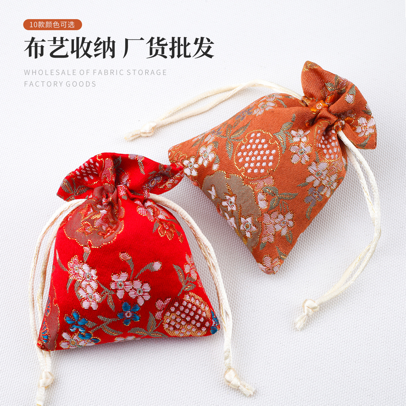 Ancient style stone bamboo flower brocade jewelry storage bag packaging Buddha beads bag brocade bag cloth bag jewelry gift bag