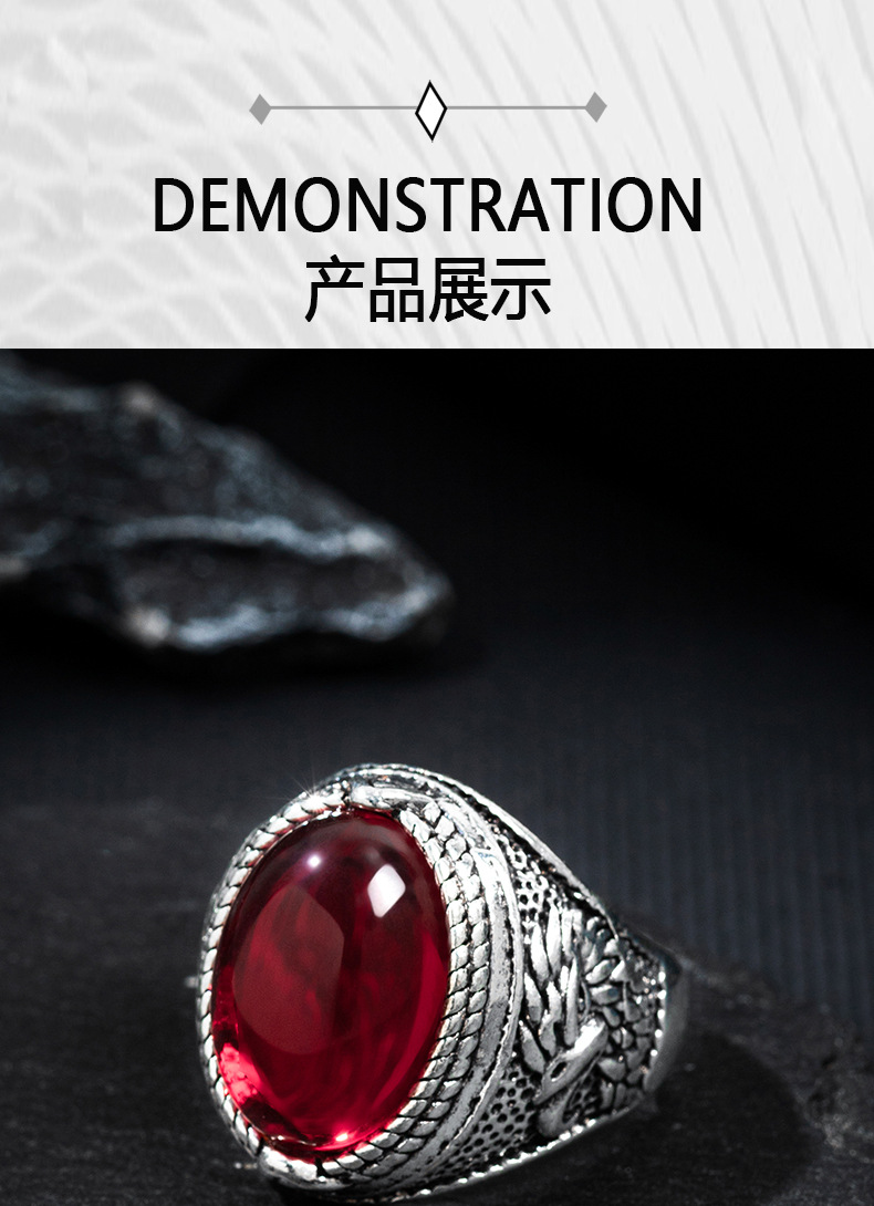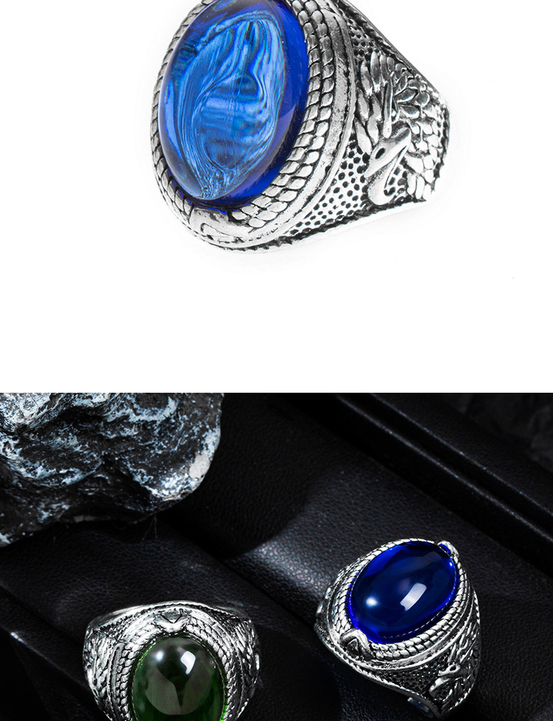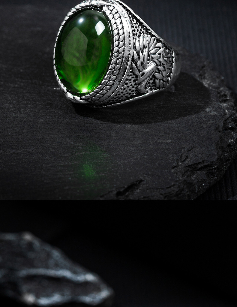 Retro Oval Gemstone Ring European and American Cross-Border Punk Style Fashion Simple Trendy Alloy Live Mouth Adjustable Ring