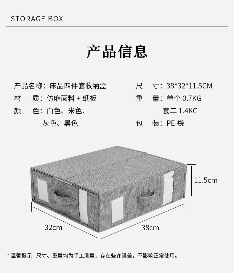 产品名称:床品四件套收纳盒