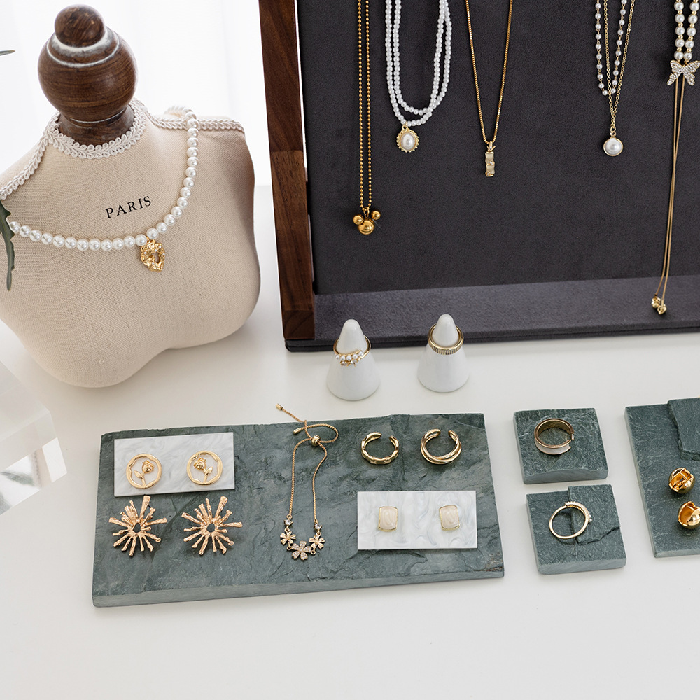 Natural stone cushion jewelry display stand square combination jewelry ring earrings photo shooting props jewelry base