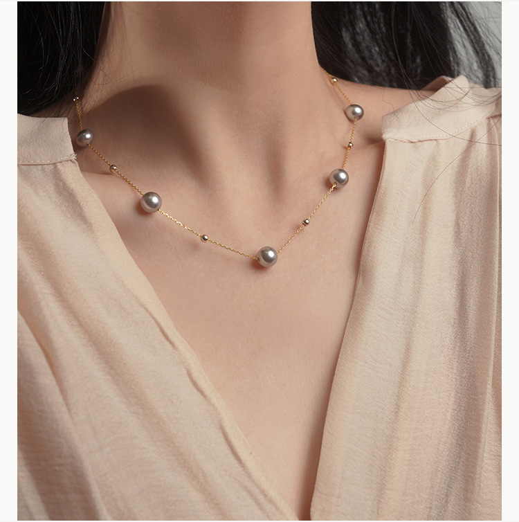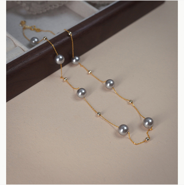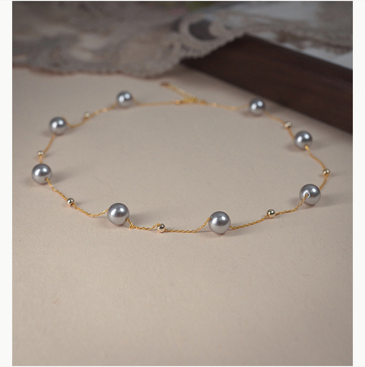 Qiyuan niche elegant gray pearl gold bead necklace 925 silver starry clavicle chain light luxury female 31271