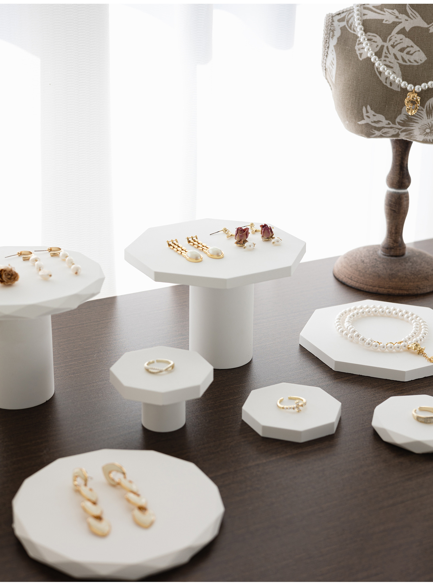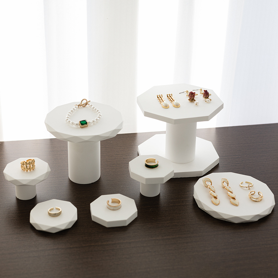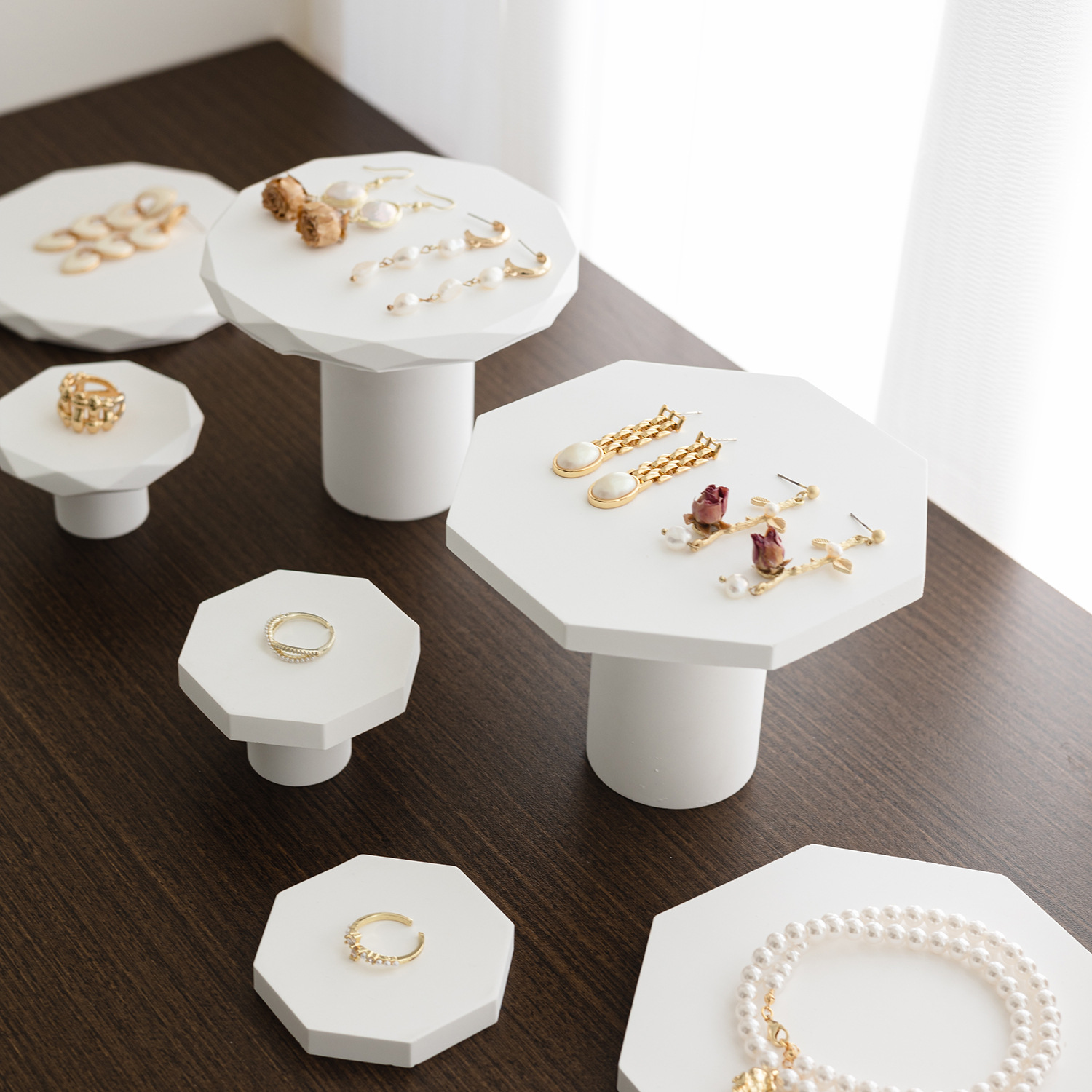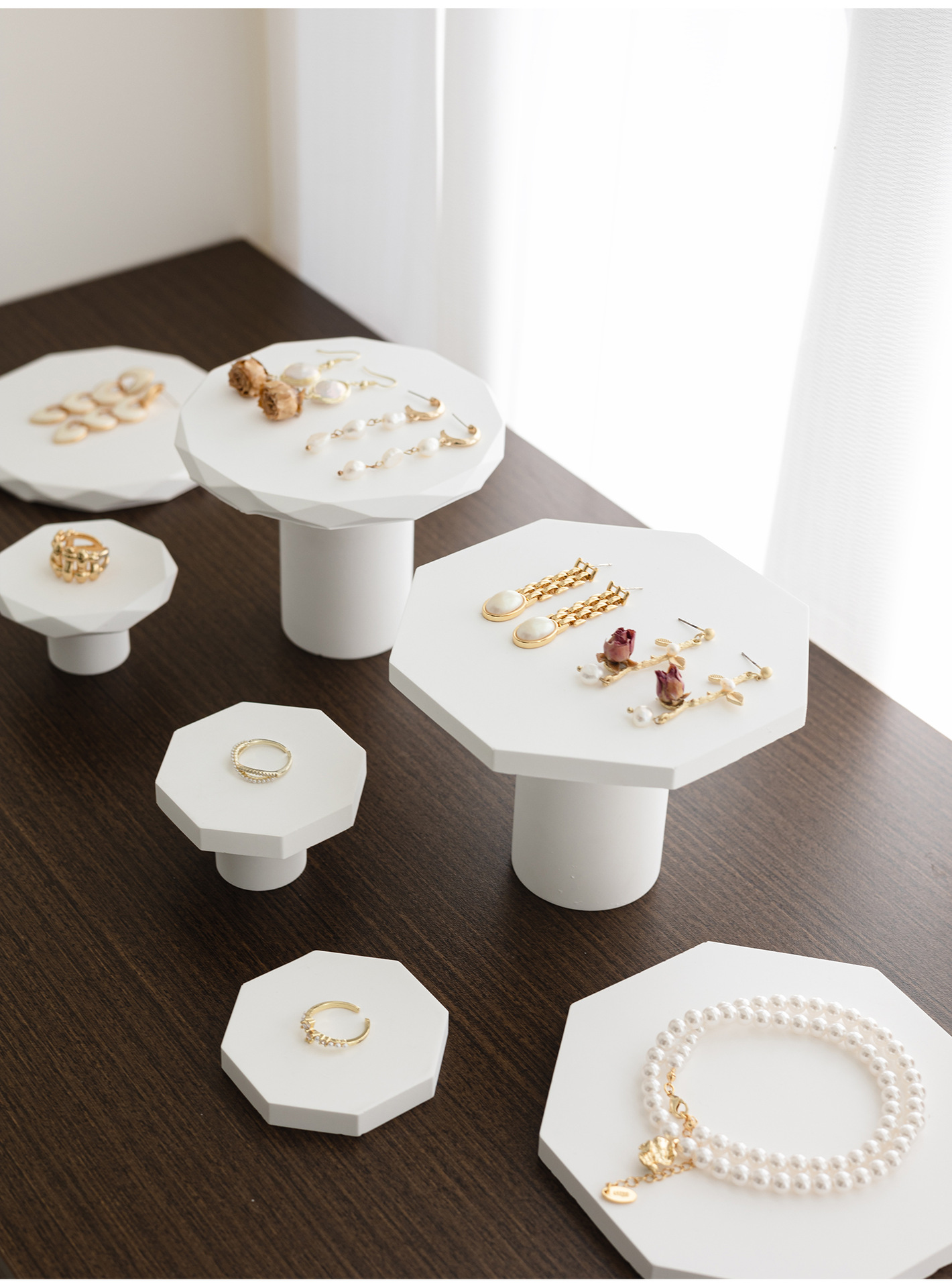Gypsum round jewelry display stand high leg tray table decoration earrings ring necklace tray display props