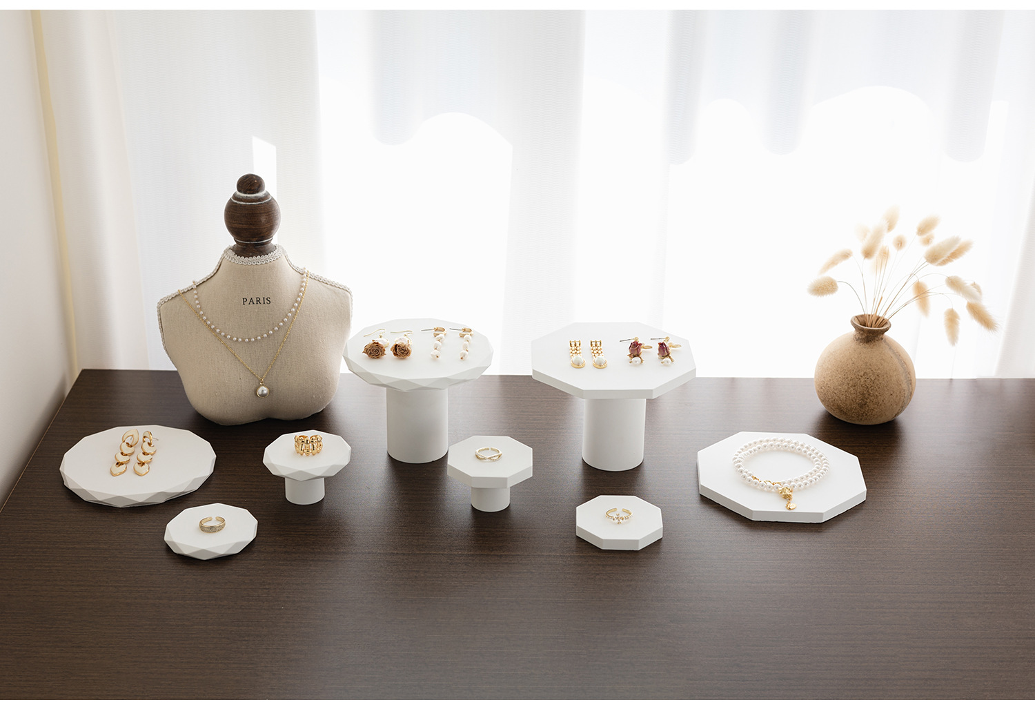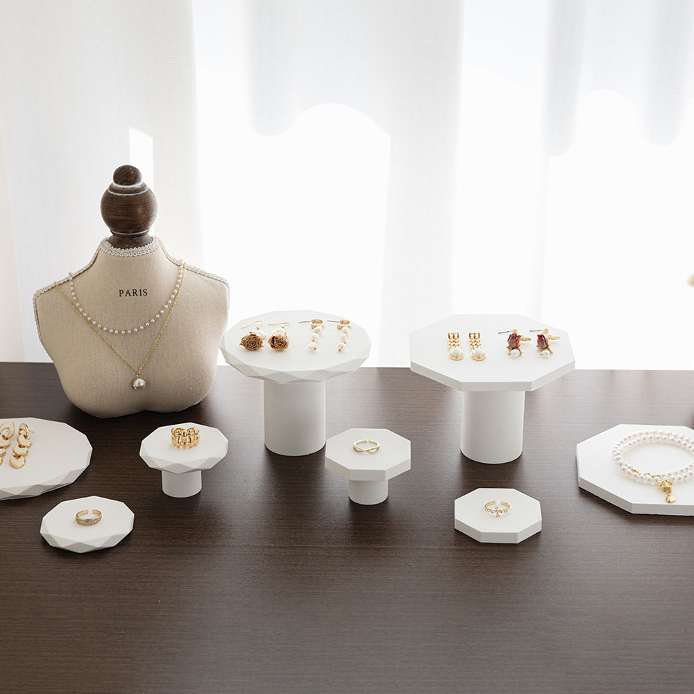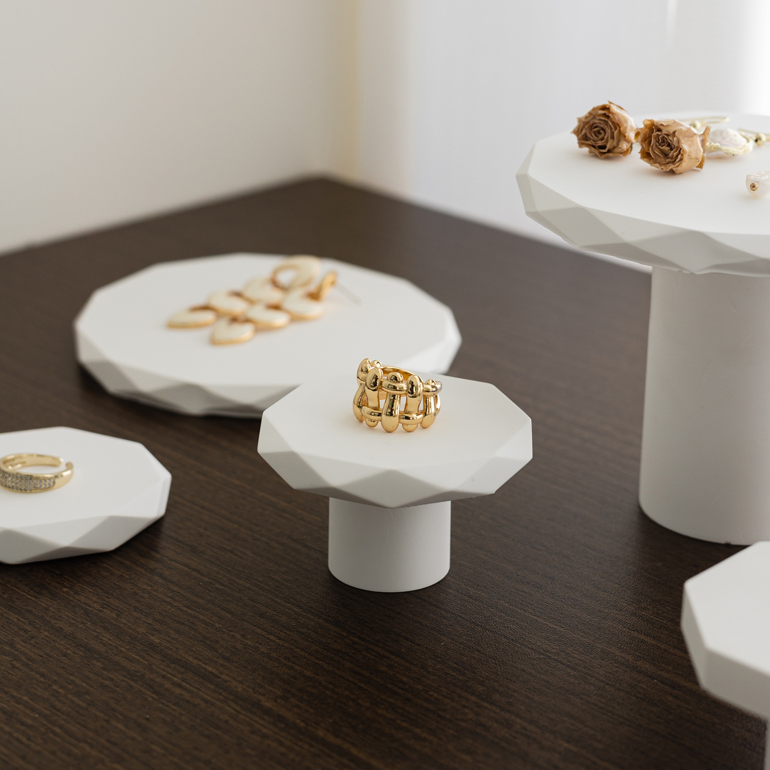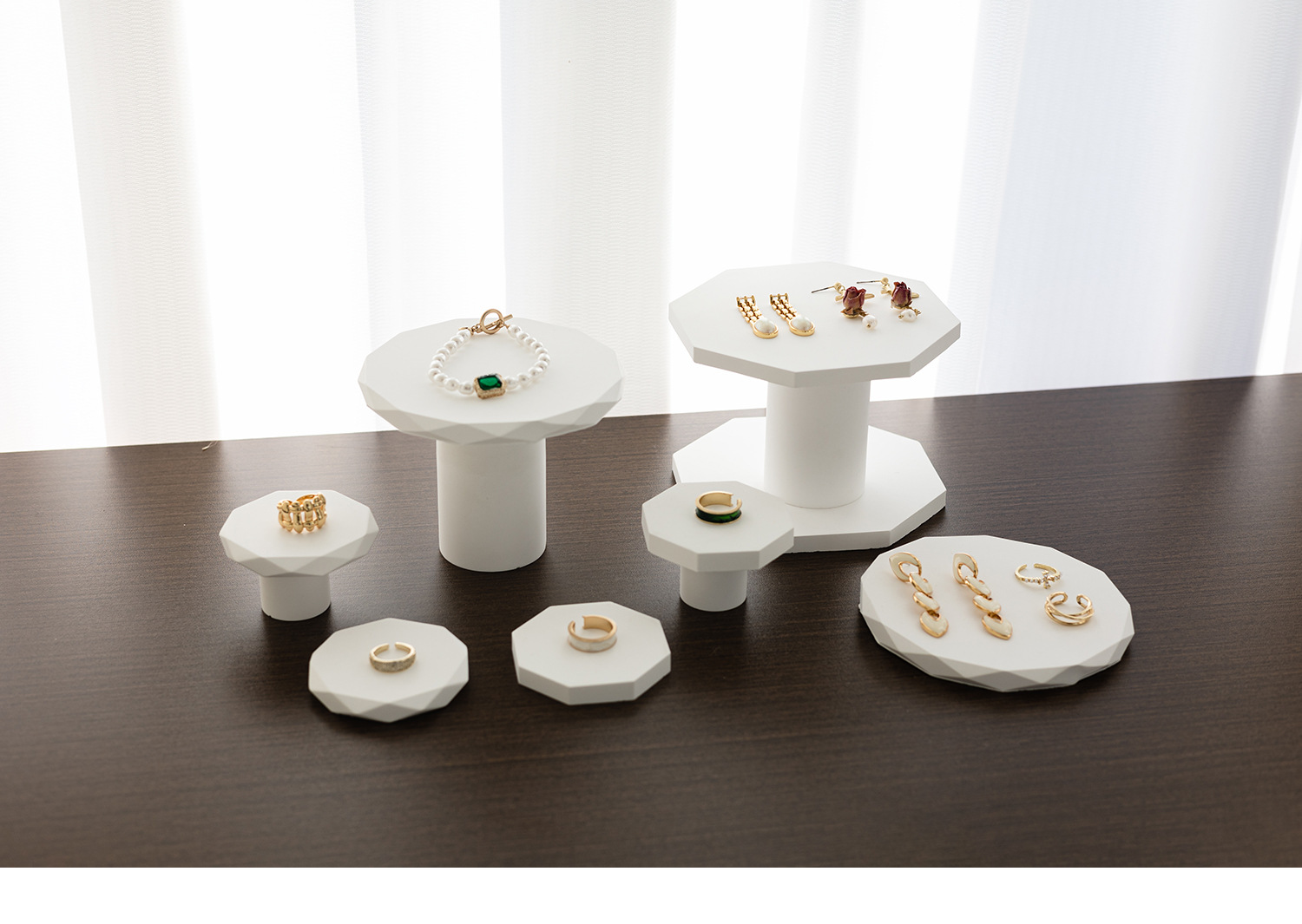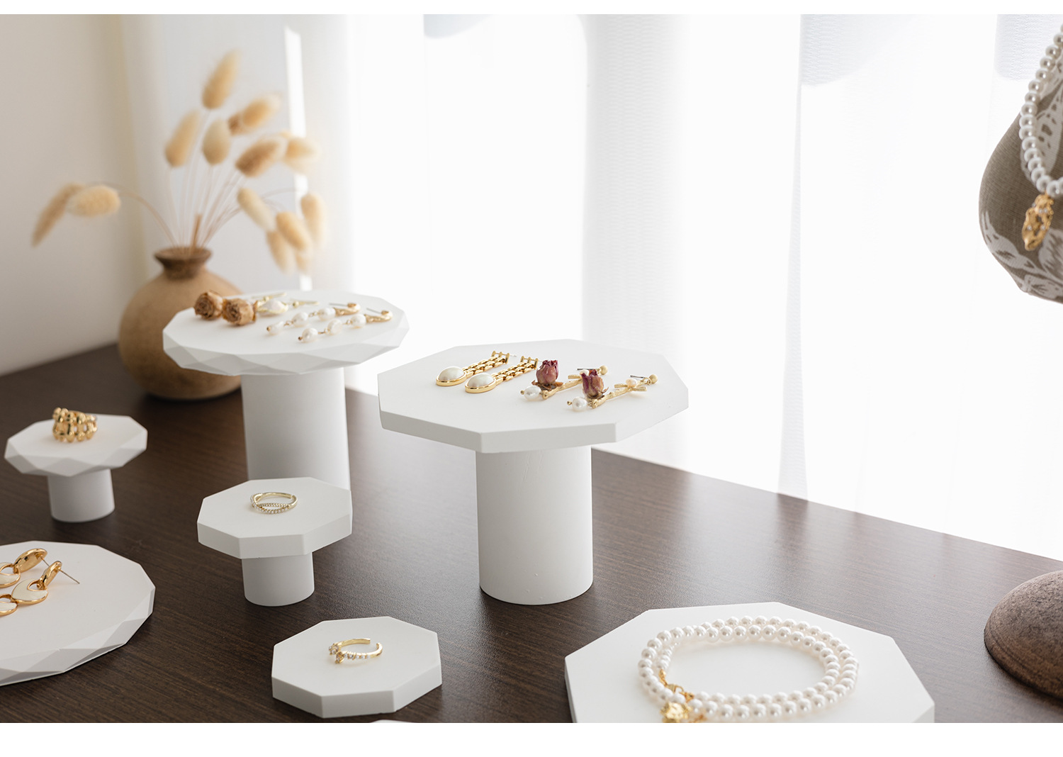 Gypsum round jewelry display stand high leg tray table decoration earrings ring necklace tray display props
