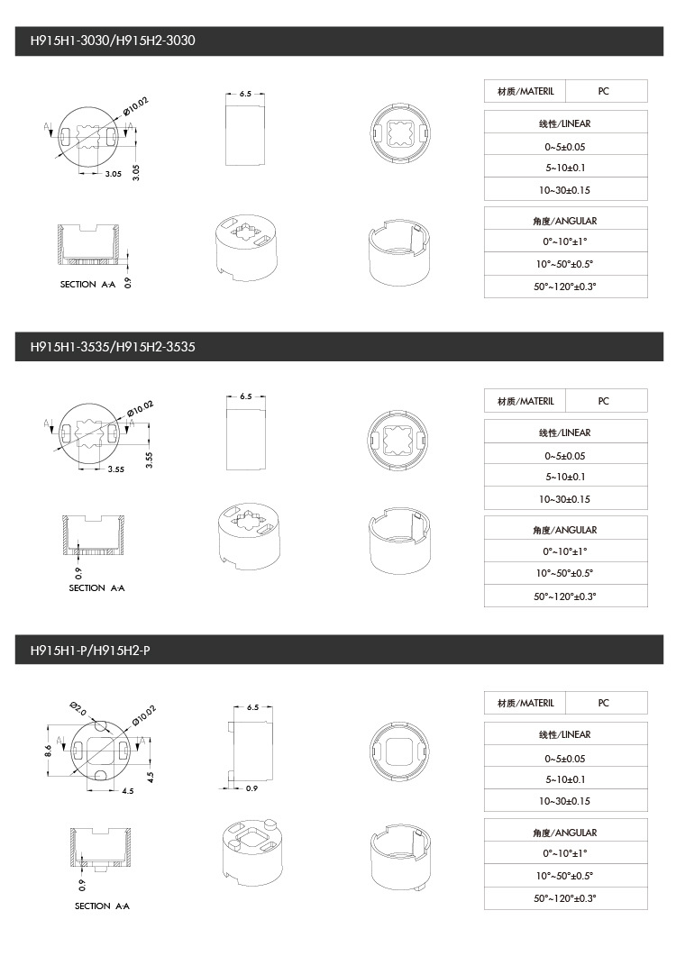 20 degree glossy lens 3030 3535 bracket 10mm small spotlight lens shop cabinet table lamp lens I