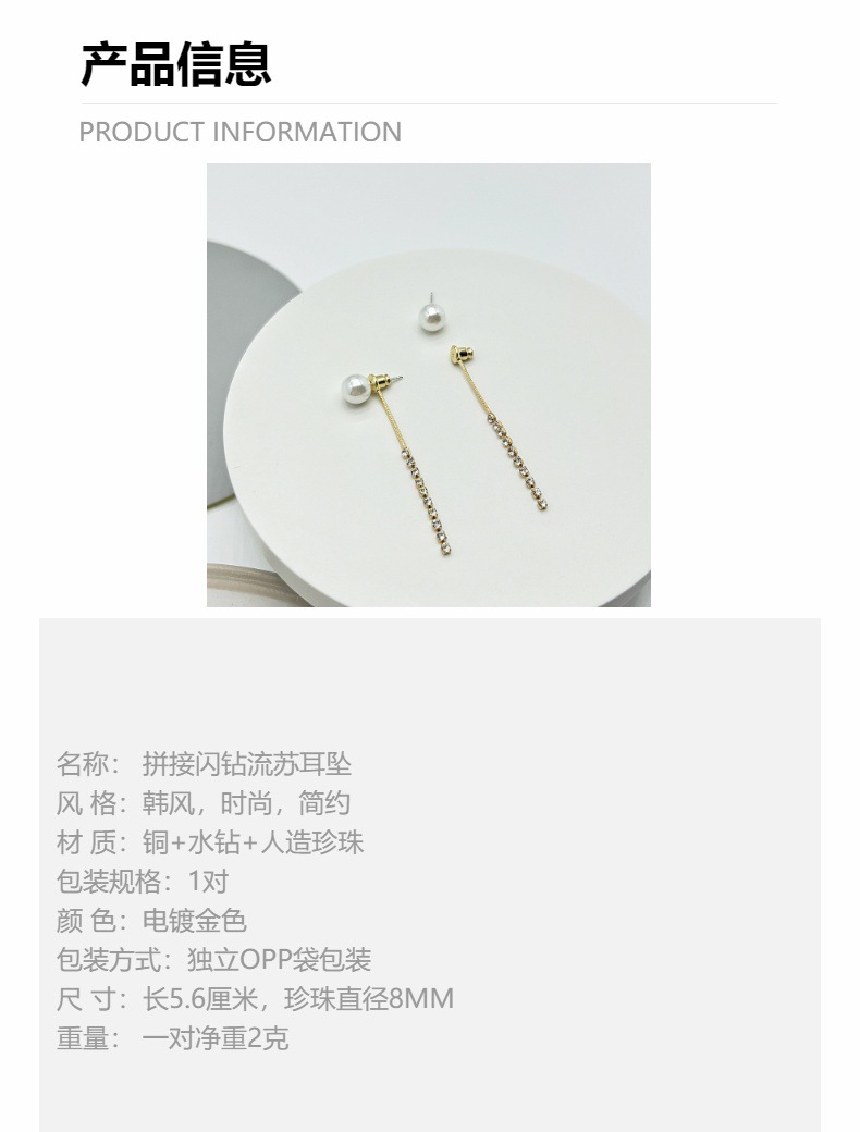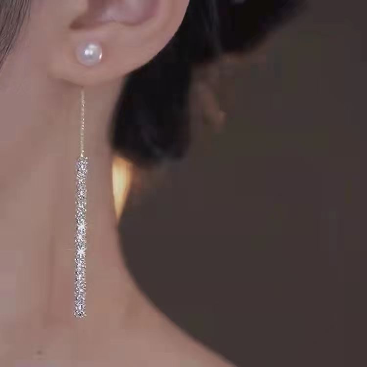 Fashionable Long Spliced Sparkling Diamond Tassel Earrings New Simple Style Elegant Elegant Stylish Exquisite Earrings for Women