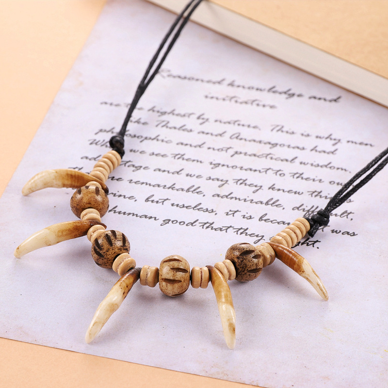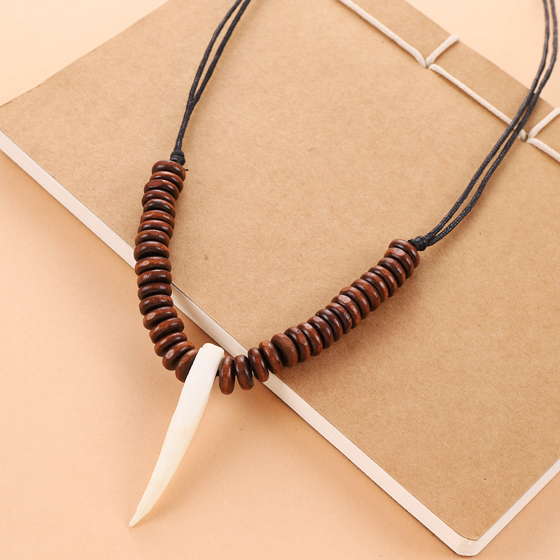 Vintage Ethnic Style Dog Tooth Necklace Men and Women Personality Xizang Yak Bone Pendant Wild Pendant Tribal Spike Accessories