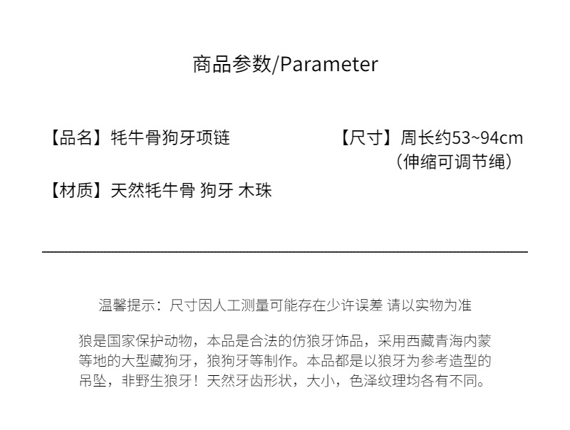 Color: Xizang Cow Bone Dog Teeth