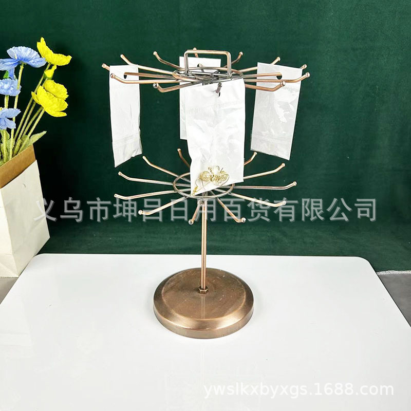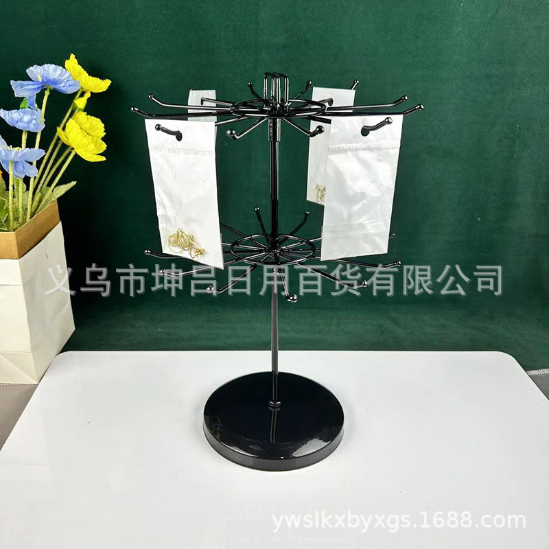 Two-layer iron rotating jewelry rack desktop storage rack lipstick necklace bracelet display rack keychain lipstick rack
