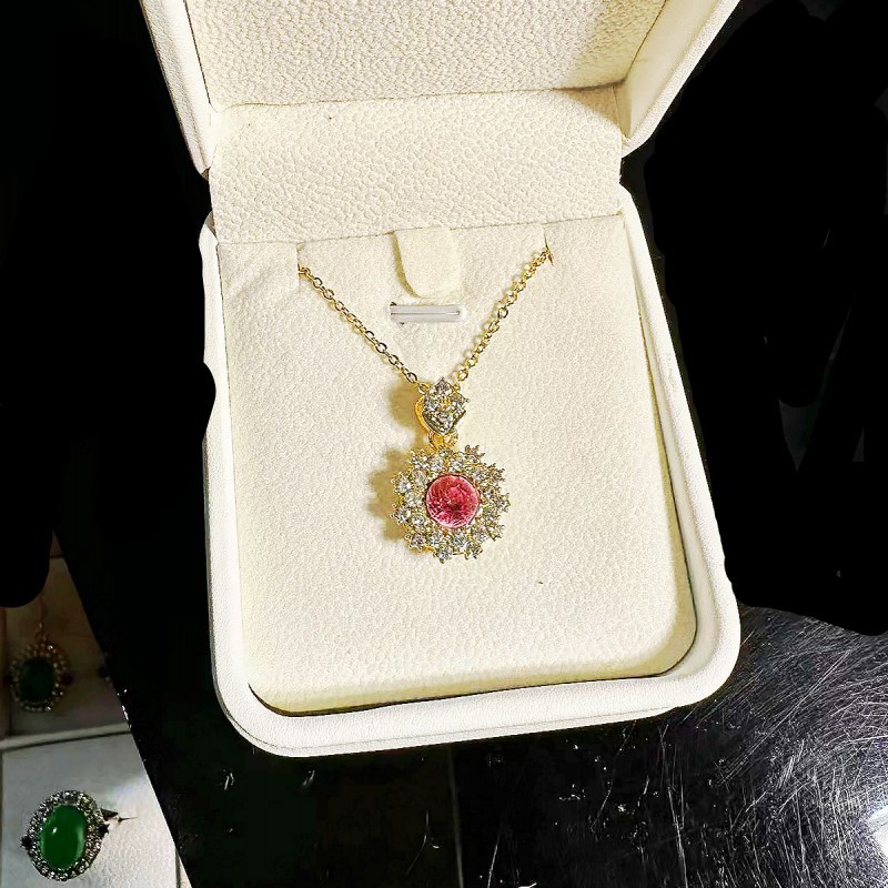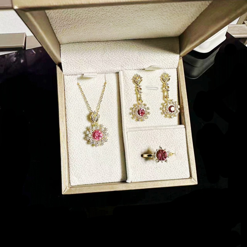 Exquisite Explosions Garnet Red Ring Pendant Earrings suit Plated 18k Gold Fire Color High Carbon Diamond Amethyst Necklace for Women