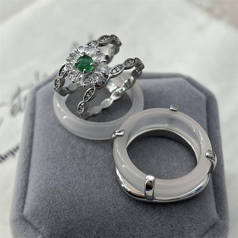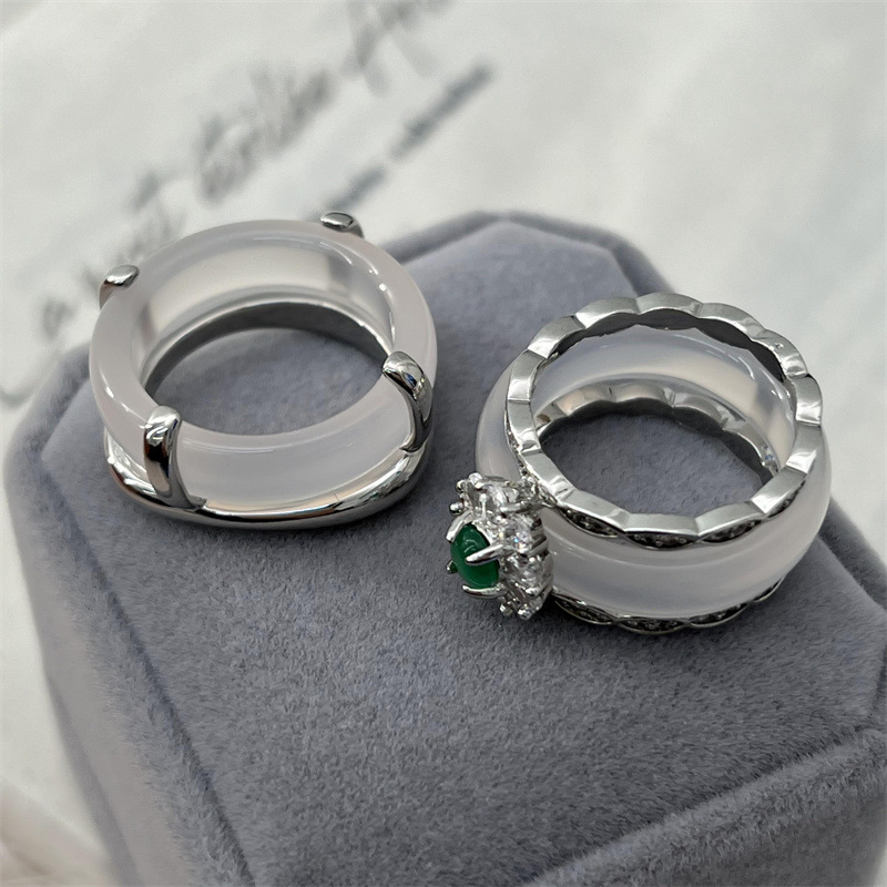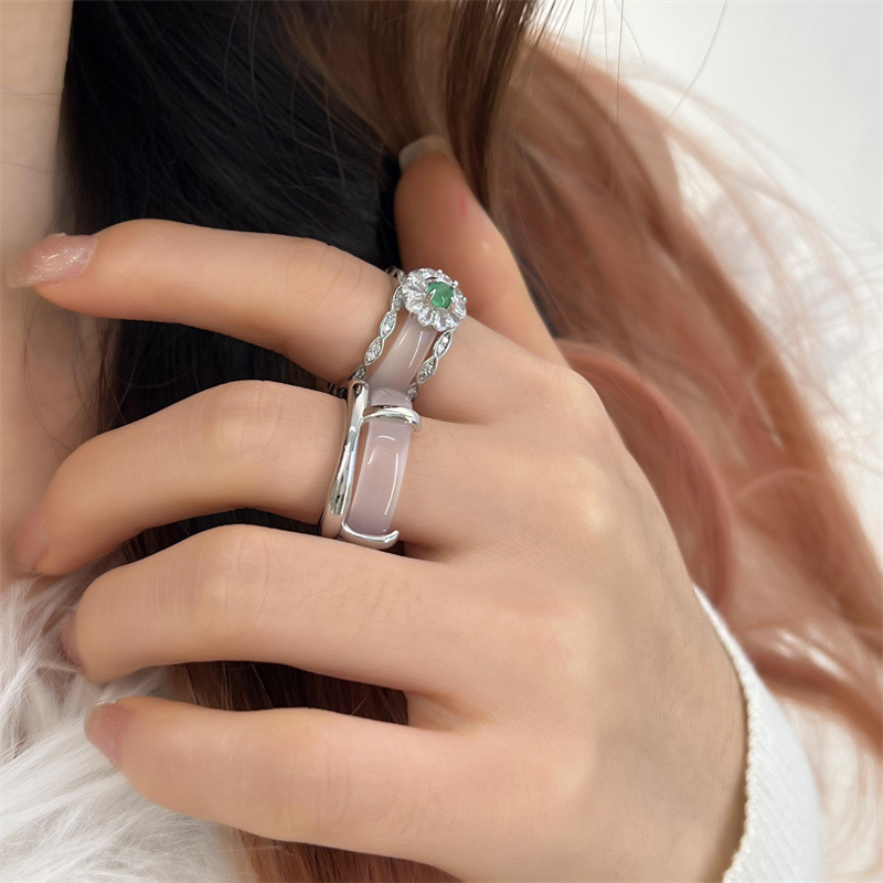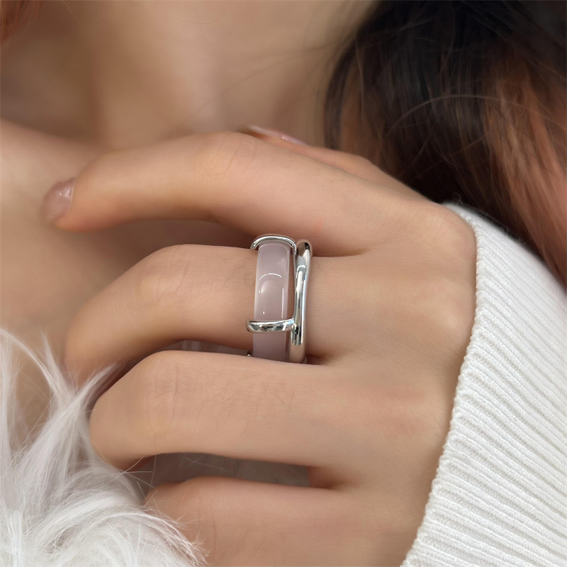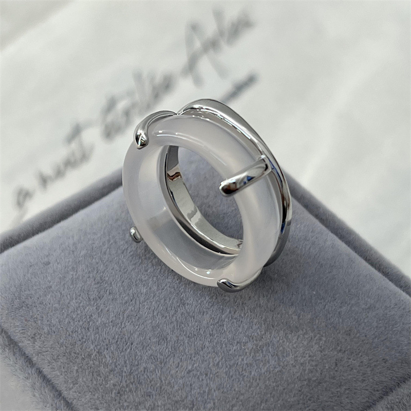 Lost Man series Transparent white agate chalcedony ring unique design double-layer high-grade index finger ring temperament all-match hand