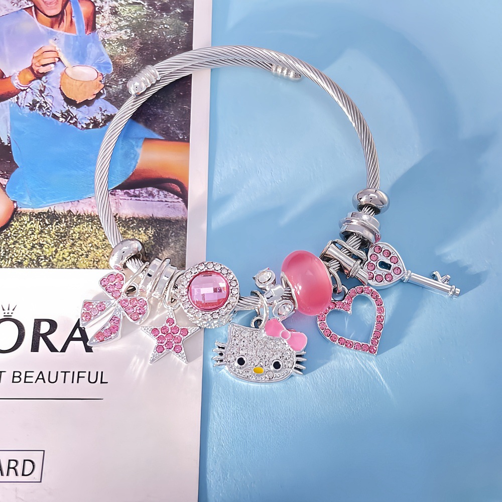 Color: Pink love key kt cat bracelet