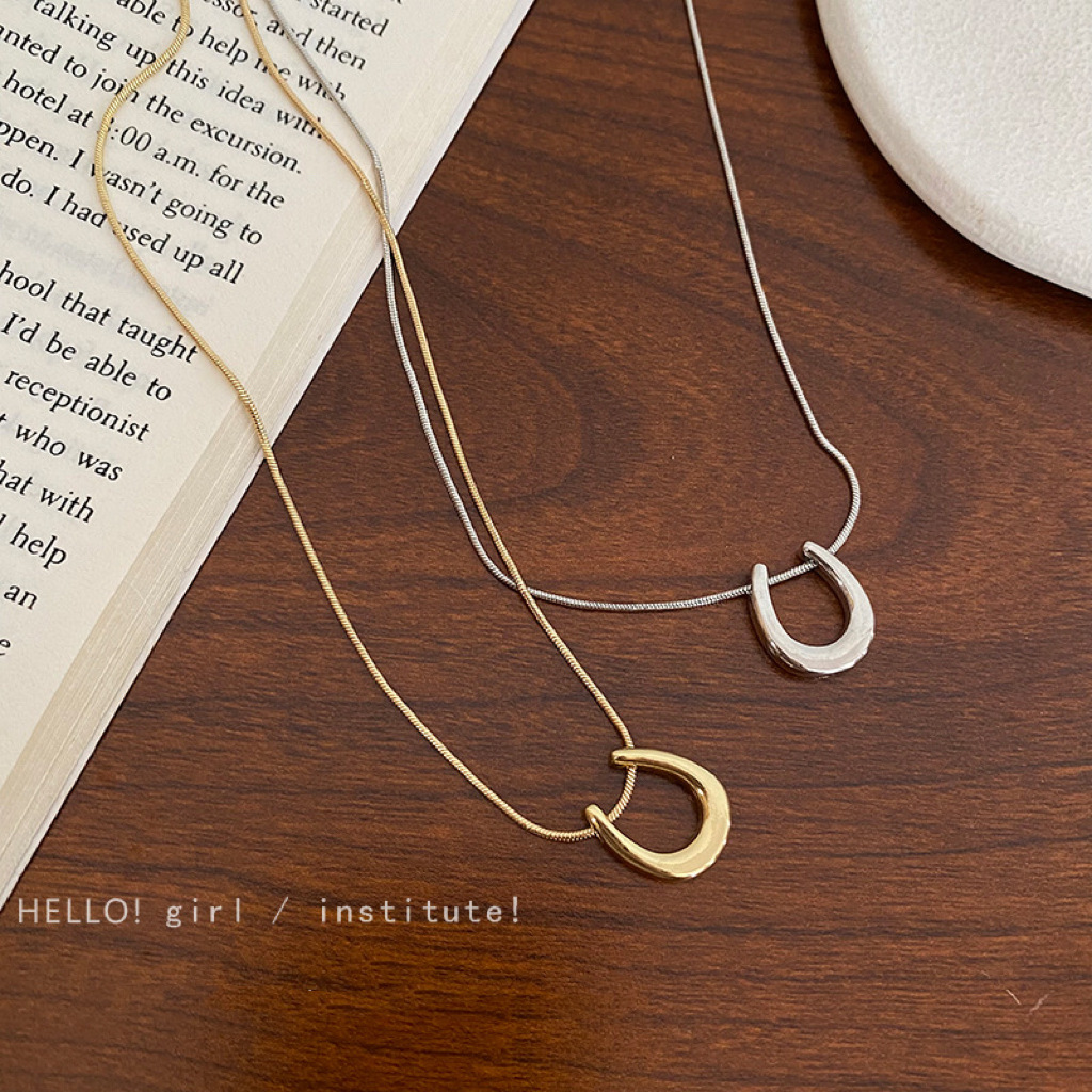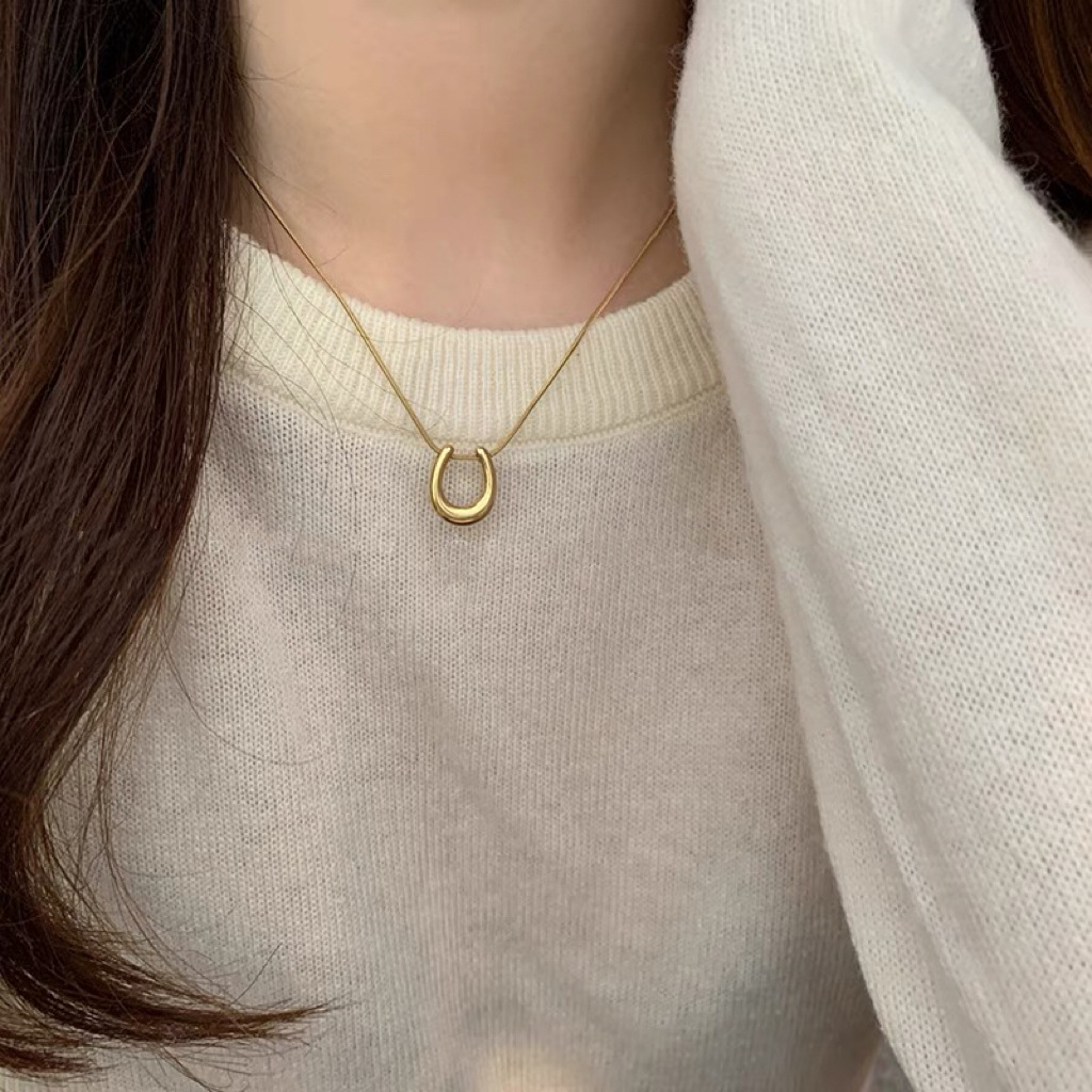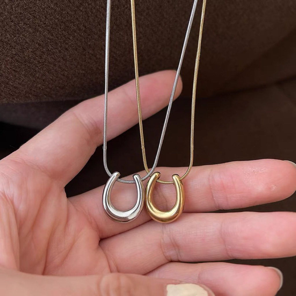 Color: Gold-Horseshoe U-necklace (whole body titanium steel)