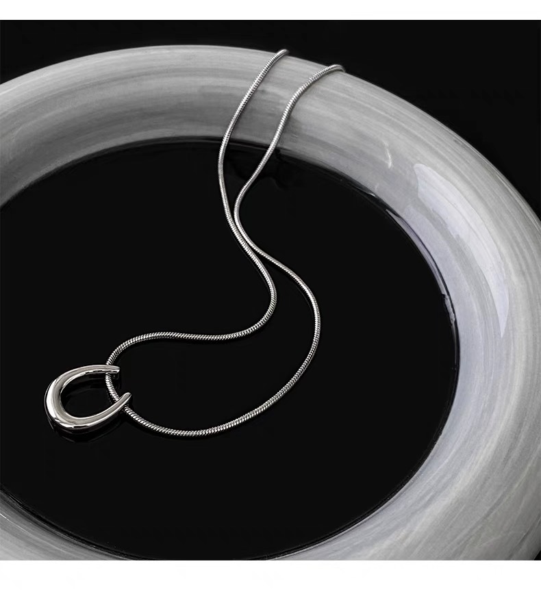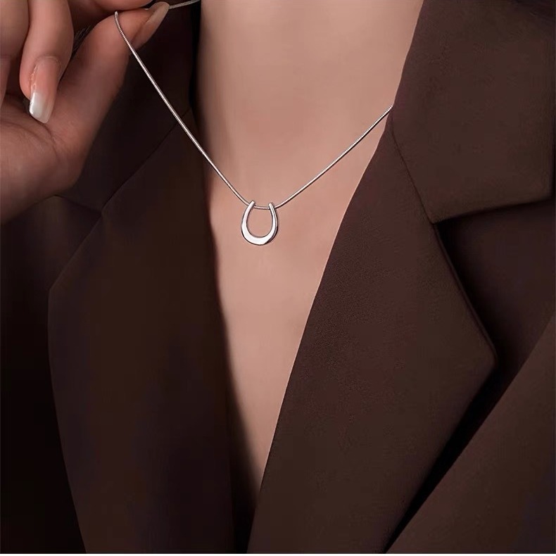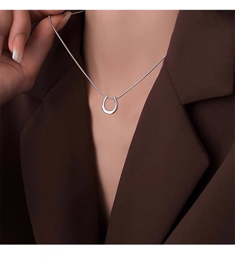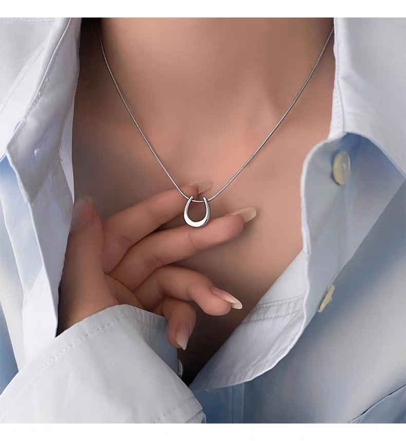 Color: Silver-Horseshoe U-necklace (whole body titanium steel)