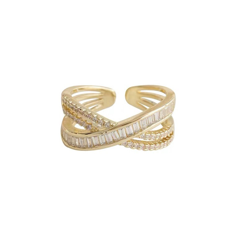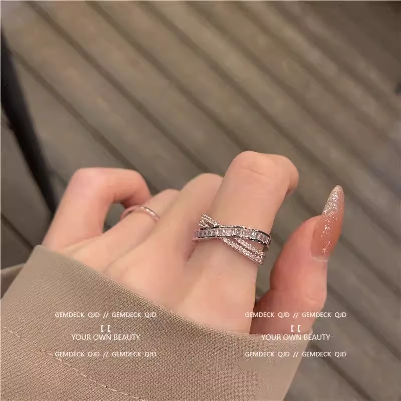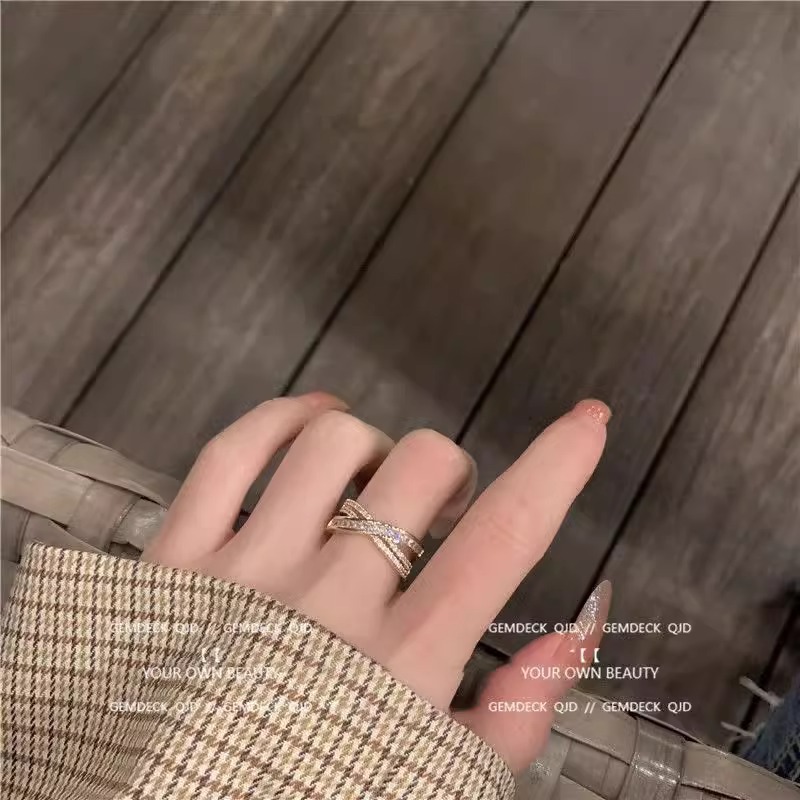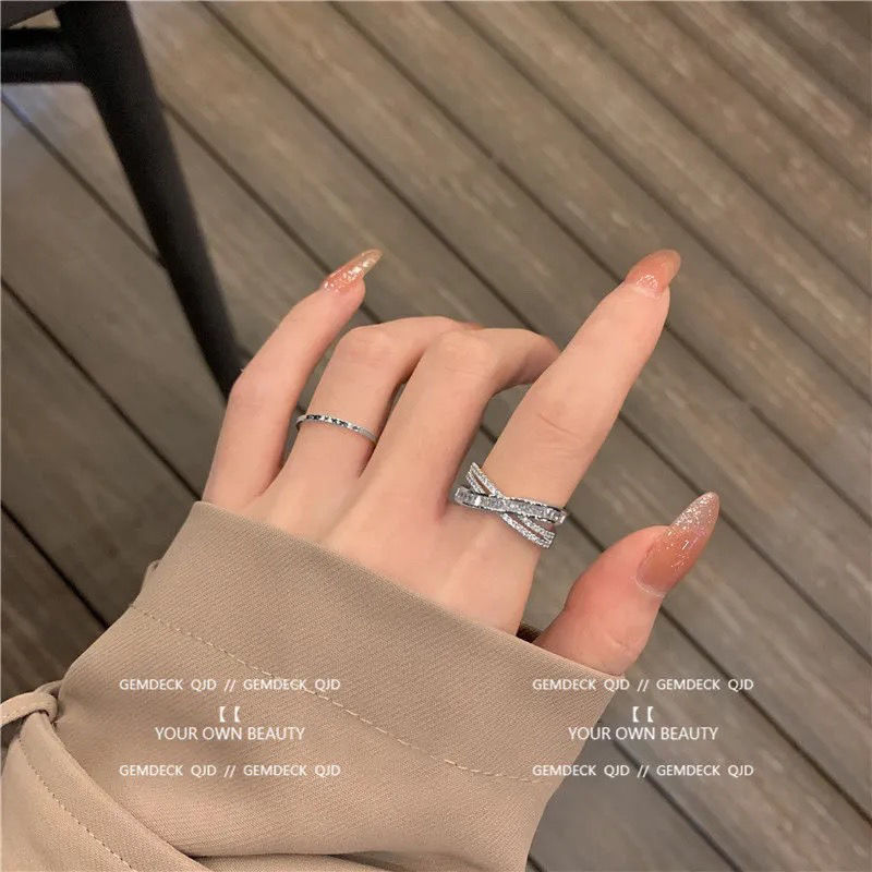 South Korea light luxury zircon multi-layer open ring personality temperament design cross index finger ring niche high sense bracelet