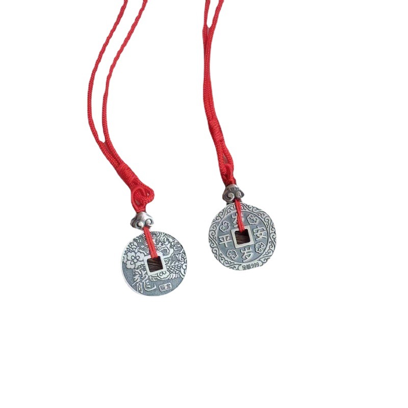 999 sterling silver zodiac symbol vintage copper coin necklace silver coin safe red rope statue pendant