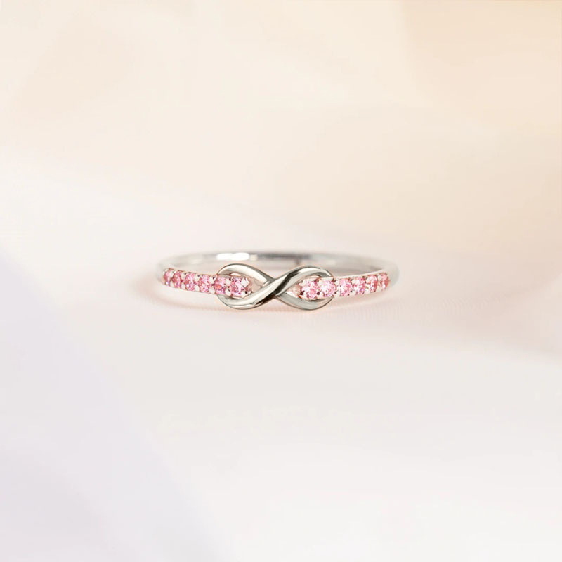 Qiyu simple fresh 8-word twist infinite symbol copper inlaid zircon women's fashion personalized small ring