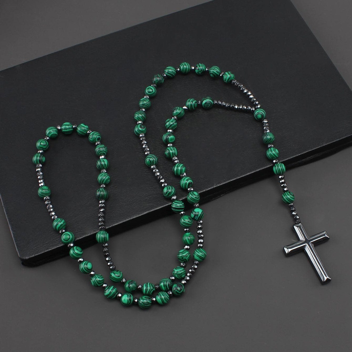 2024跨境新款非洲松黄虎眼复古天然石男士长款十字架项链毛衣链