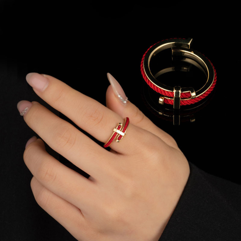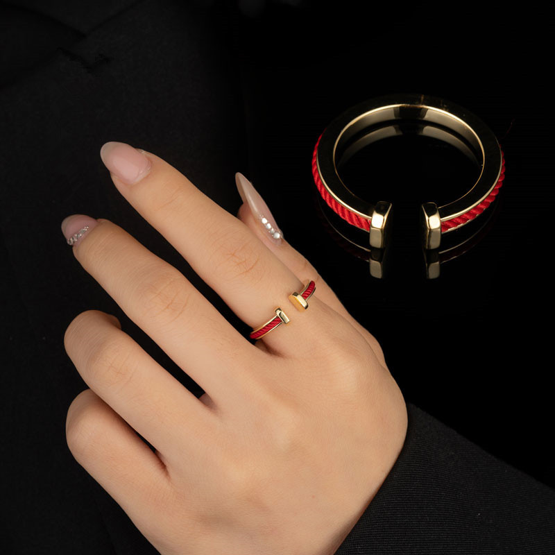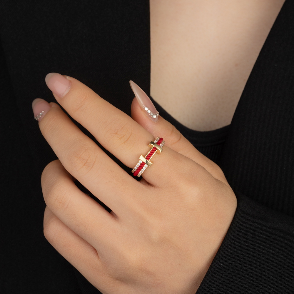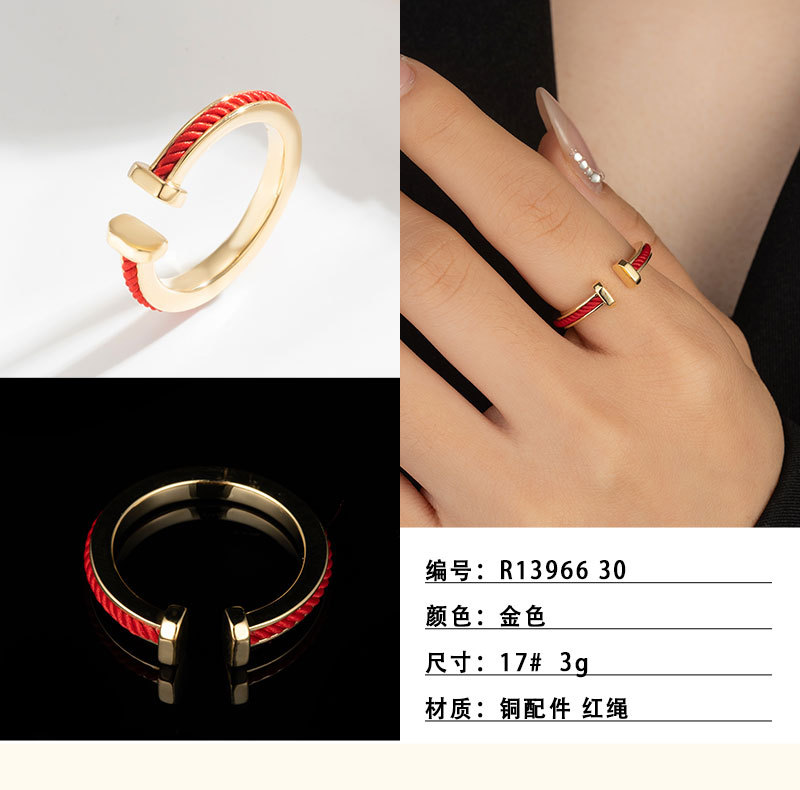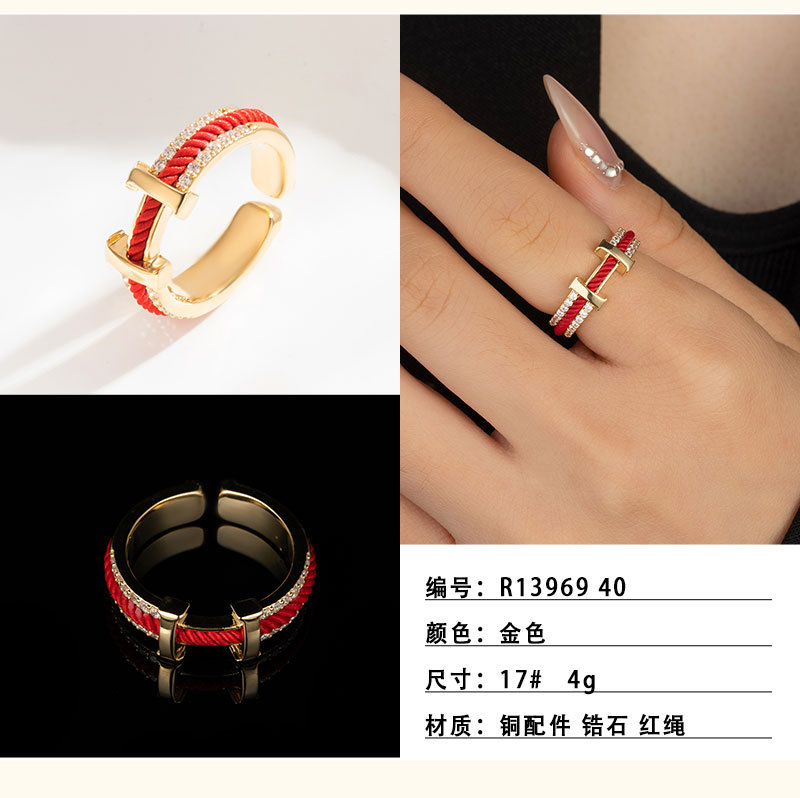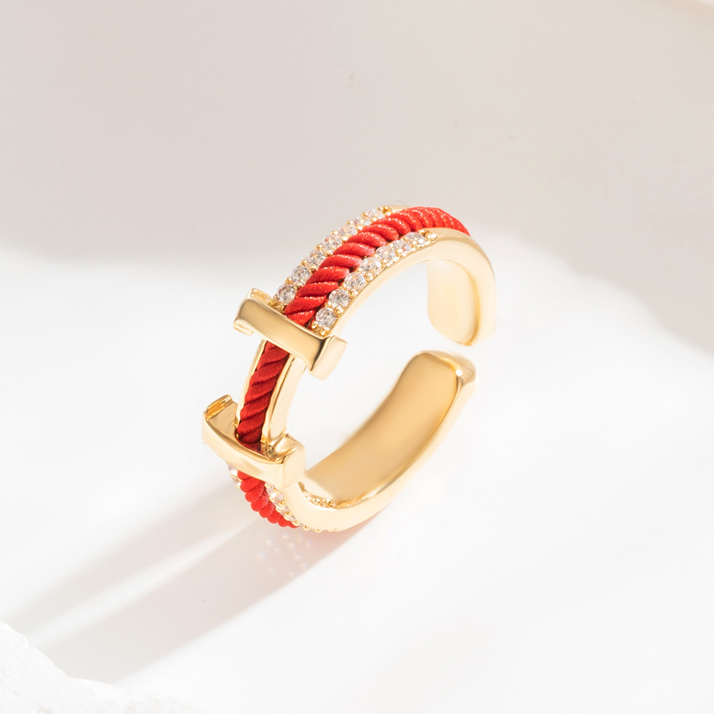 New Chinese style ring light luxury National style red rope running ring female all-match copper zircon Dragon year high-grade fashion