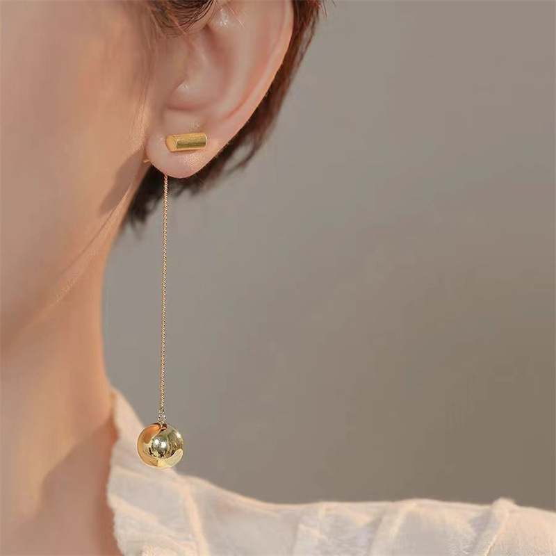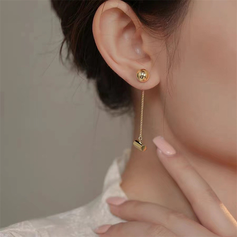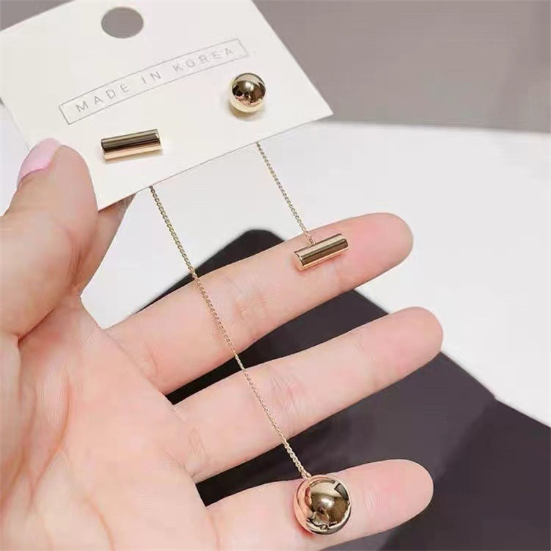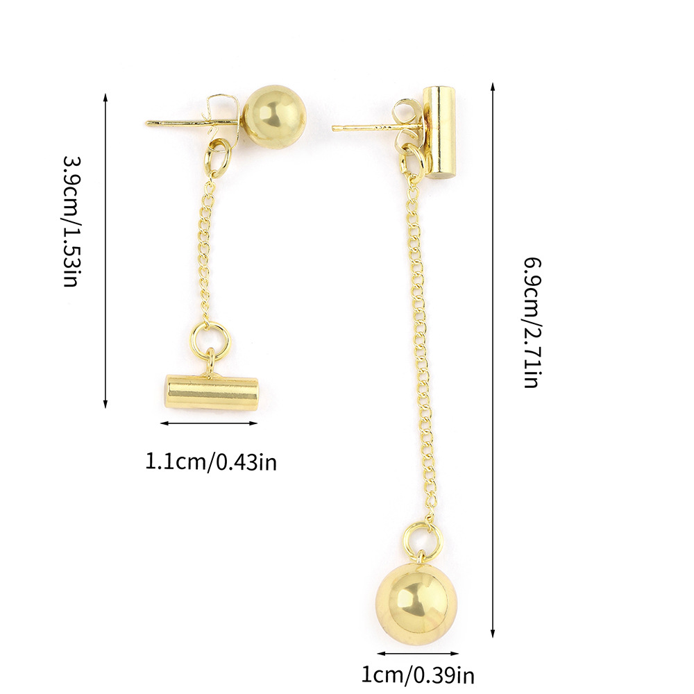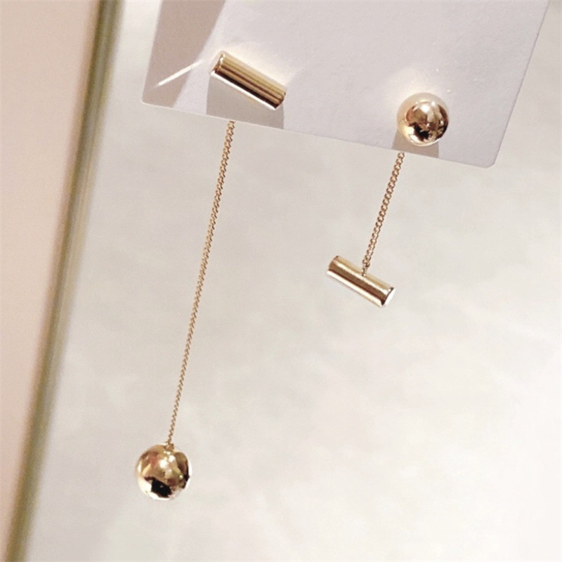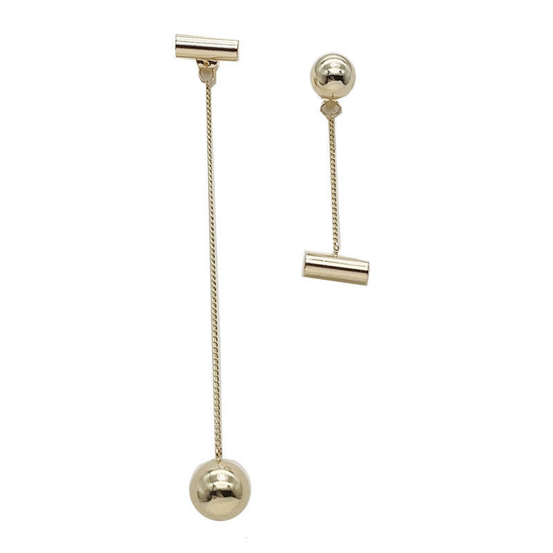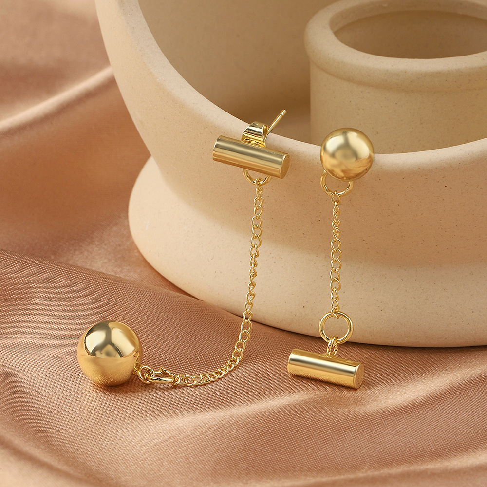 New niche design three-dimensional geometric earrings women's long cold style personalized horizontal bar asymmetric gold column earrings