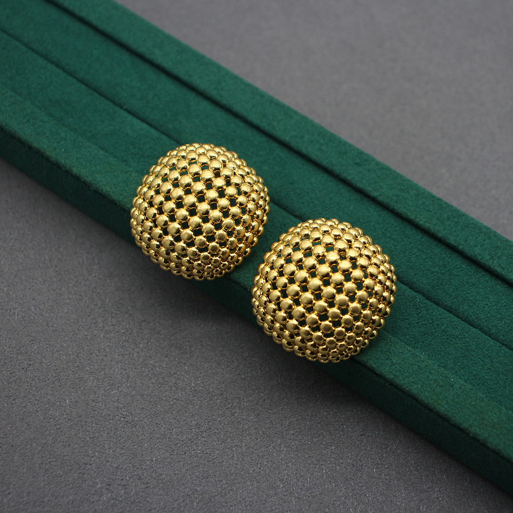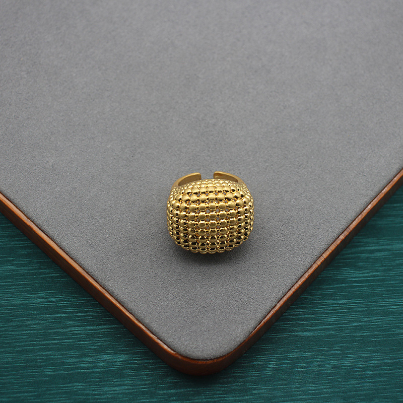 European and American Personality Exaggerated Gold Earrings Ring Hollow Small Chanel Style Button Earrings Opening Personality Copper Plated Real Gold Ring