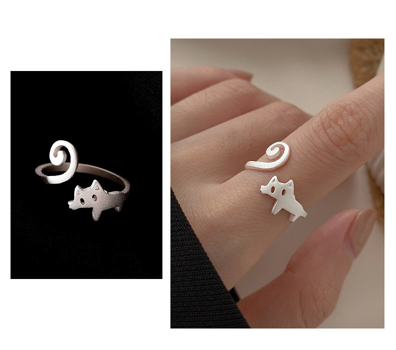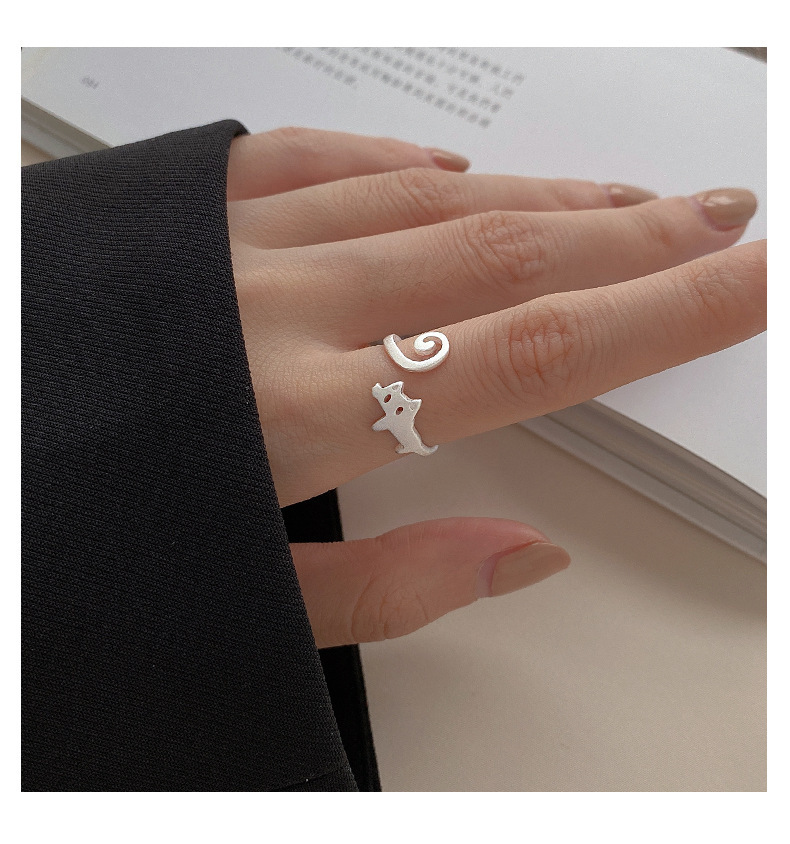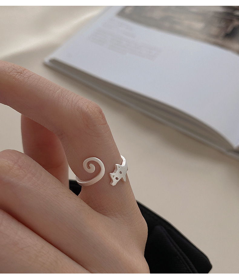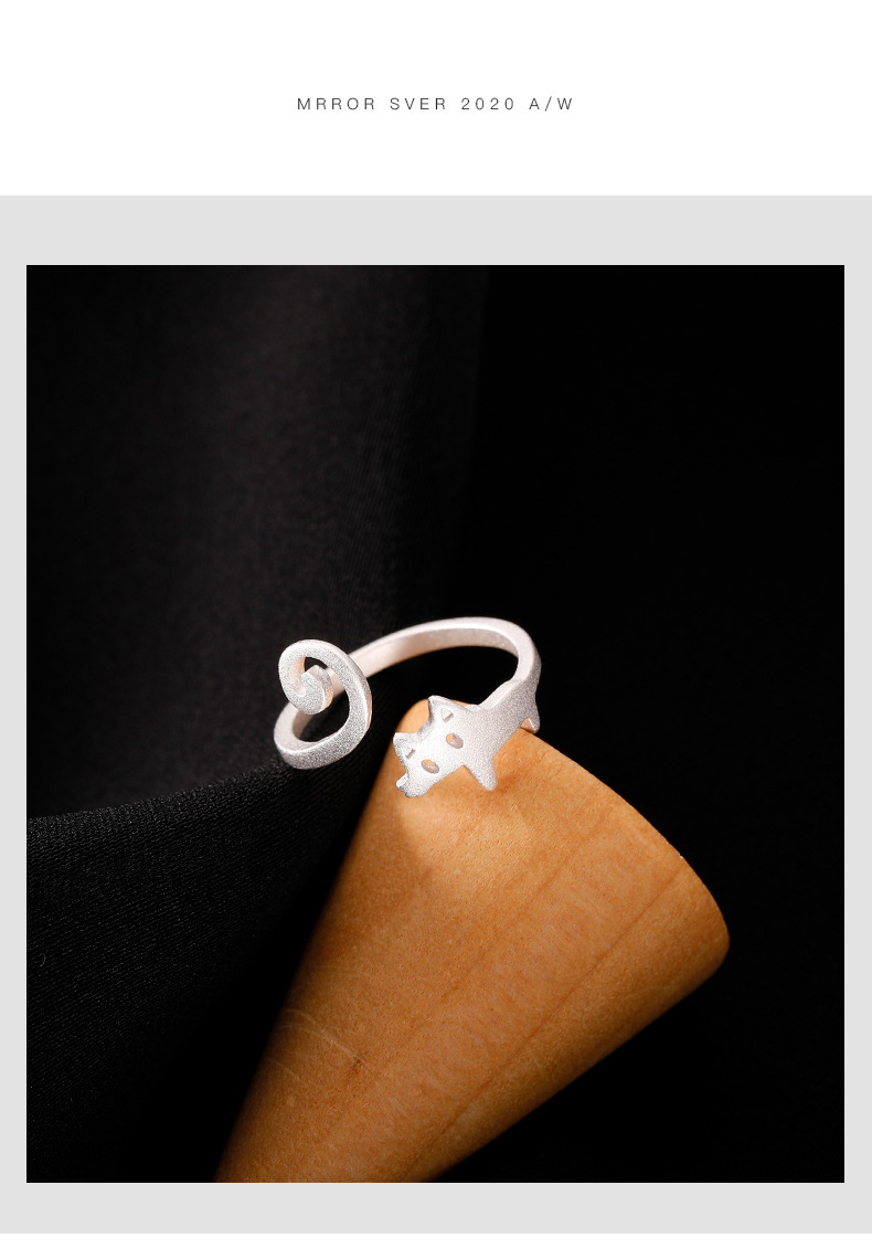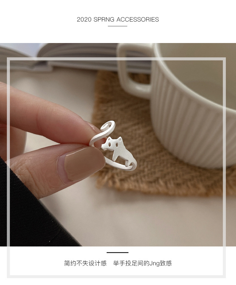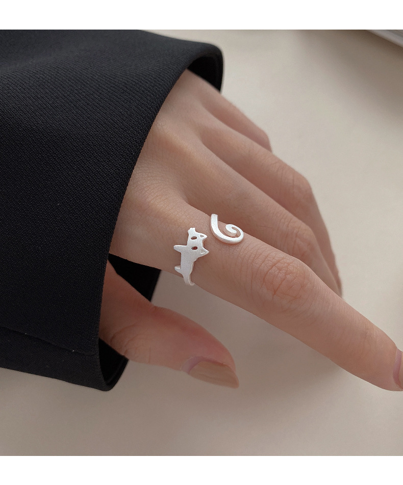Kitten ring girl cute simple niche design frosted cat animal ring opening adjustable ring