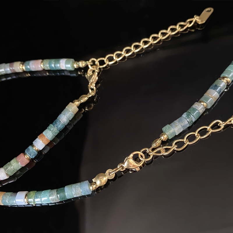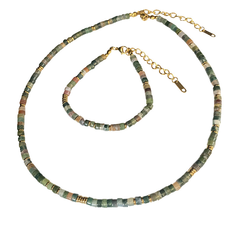 Niche design European and American fashion Indian agate bracelet necklace set collarbone light cold wind ins fashion factory direct supply