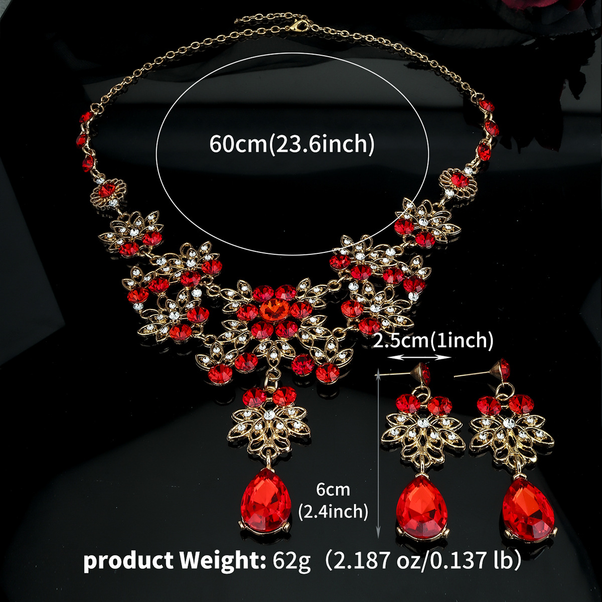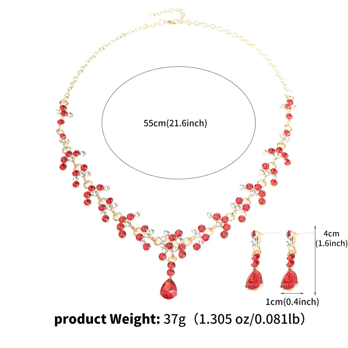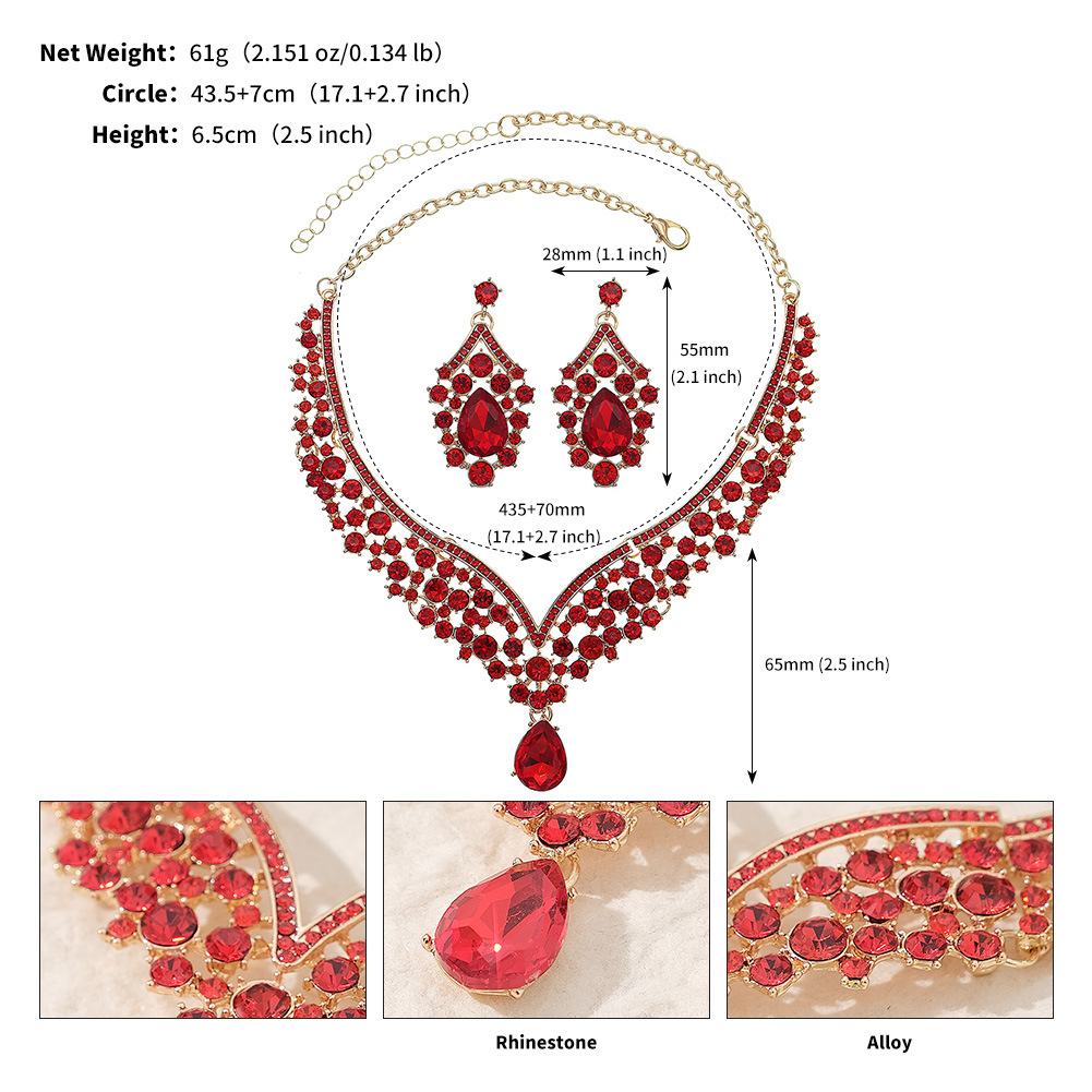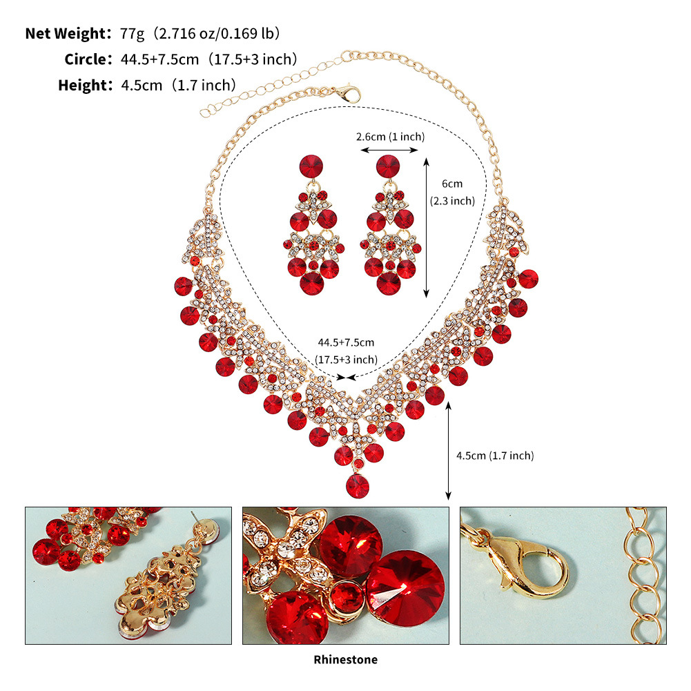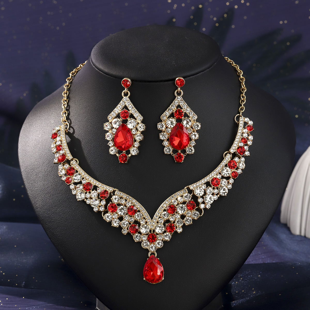Use scenario: Bridal chain ruby necklace set alloy rhinestone earrings necklace