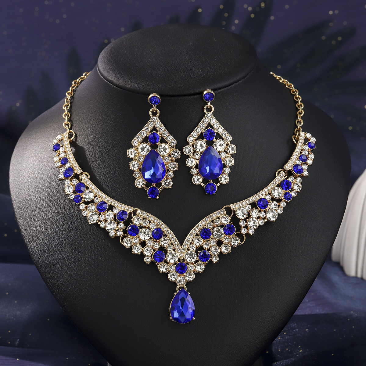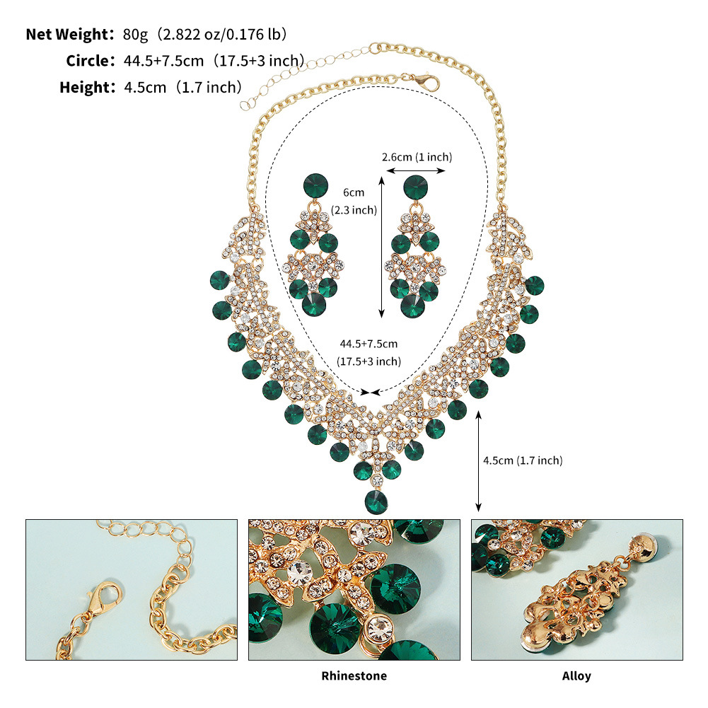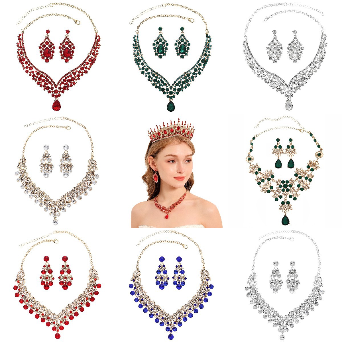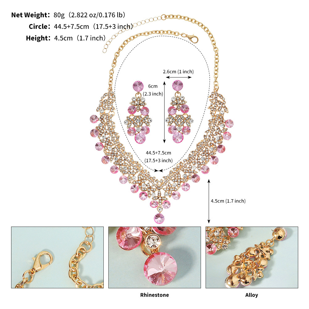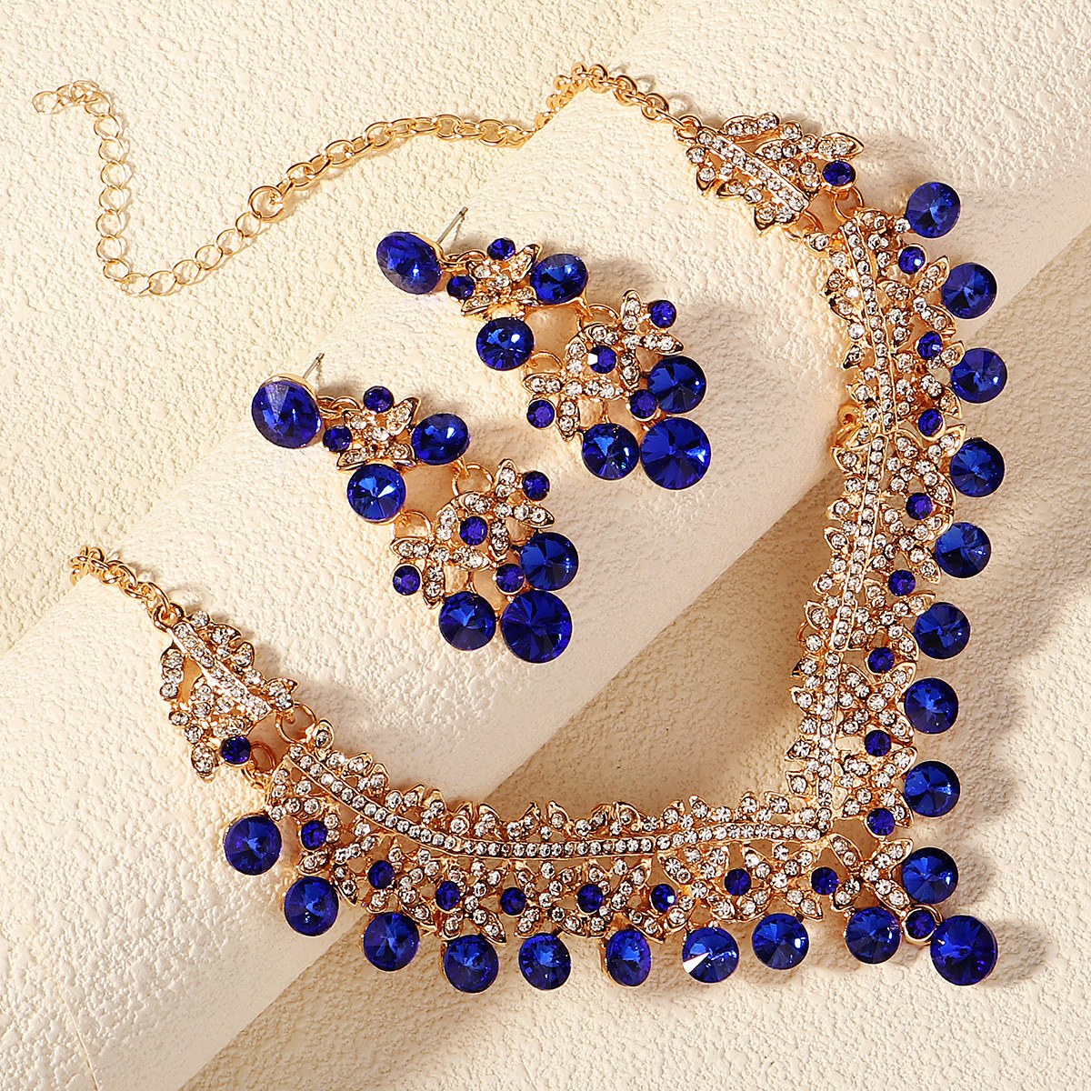 Use scenario: Bridal chain ruby necklace set alloy rhinestone earrings necklace
