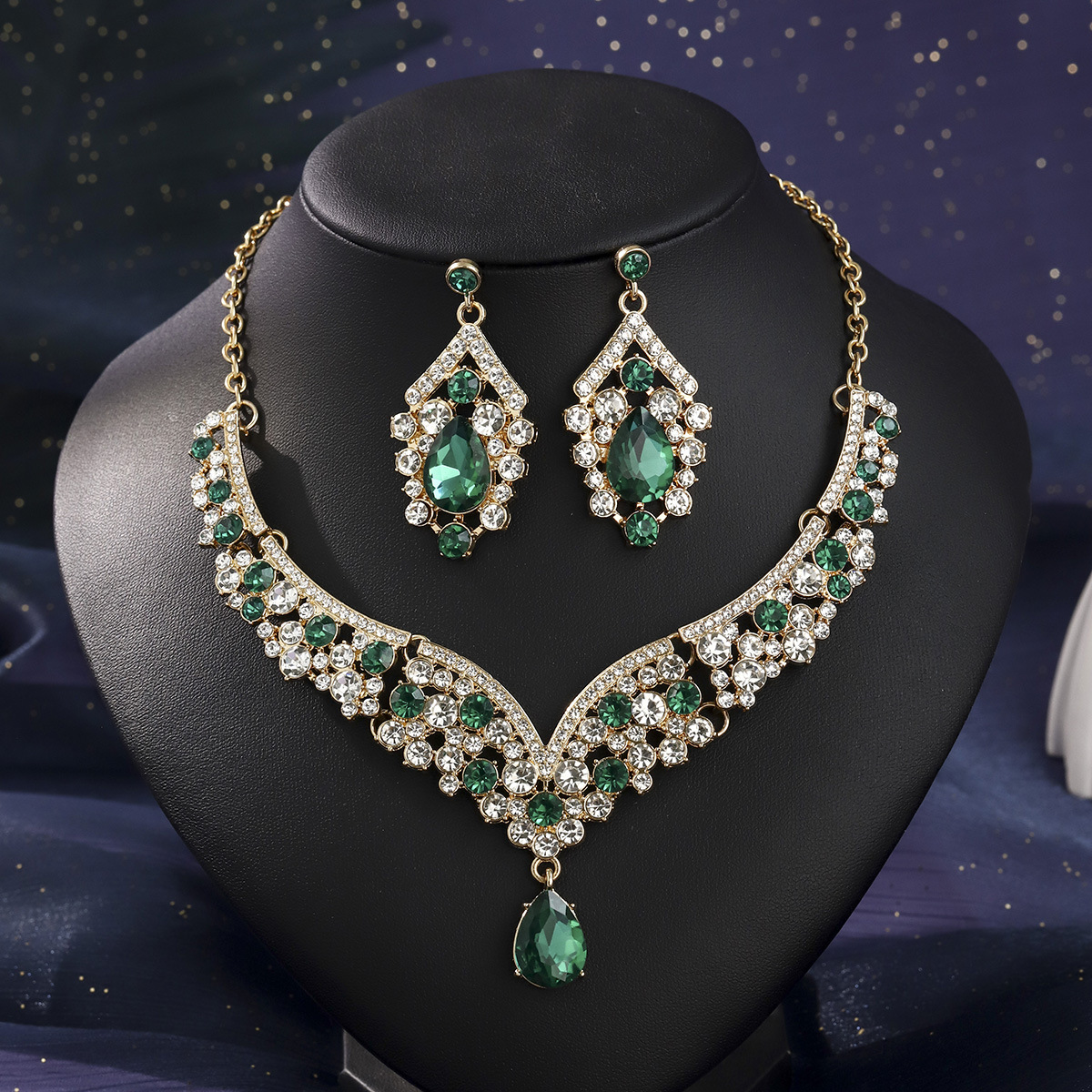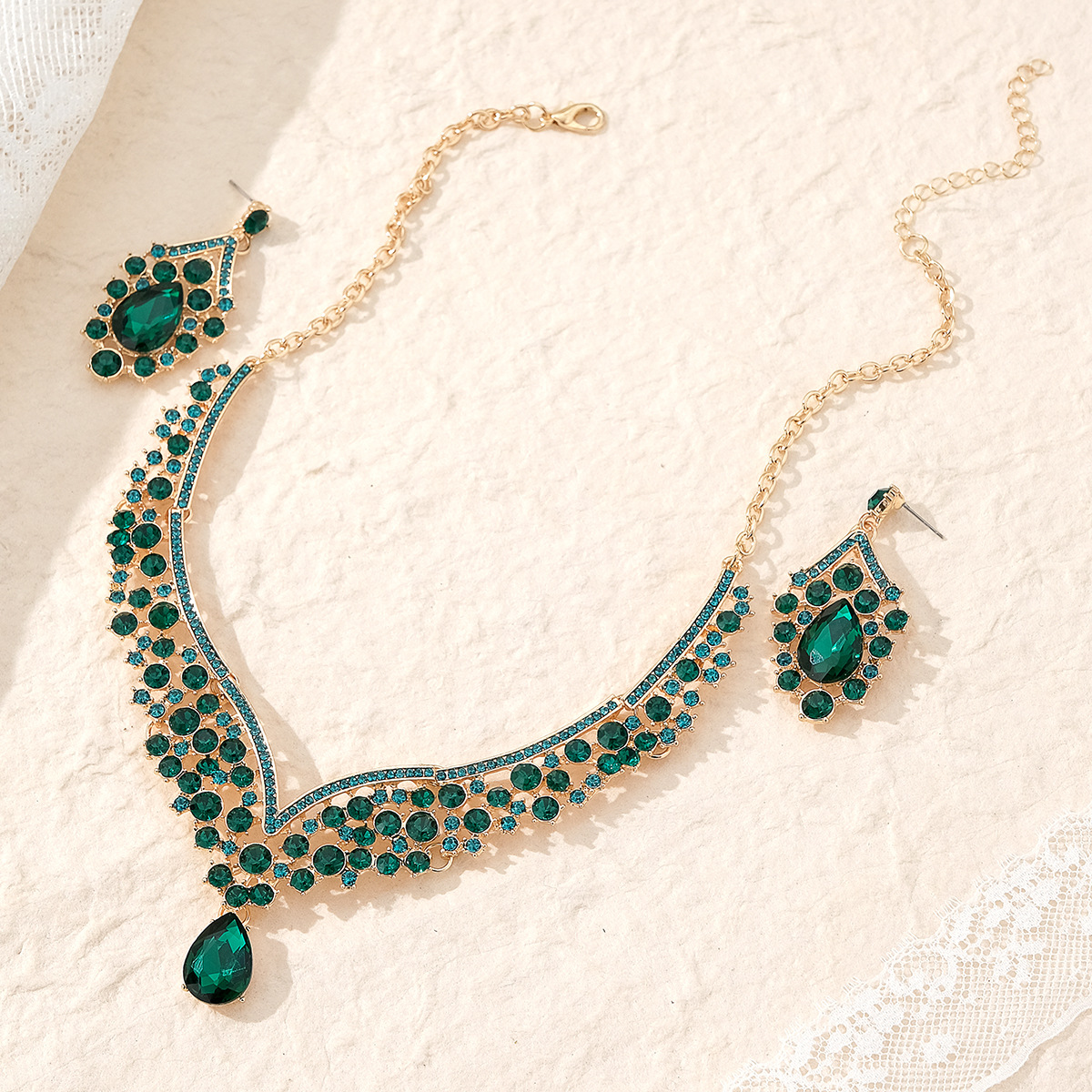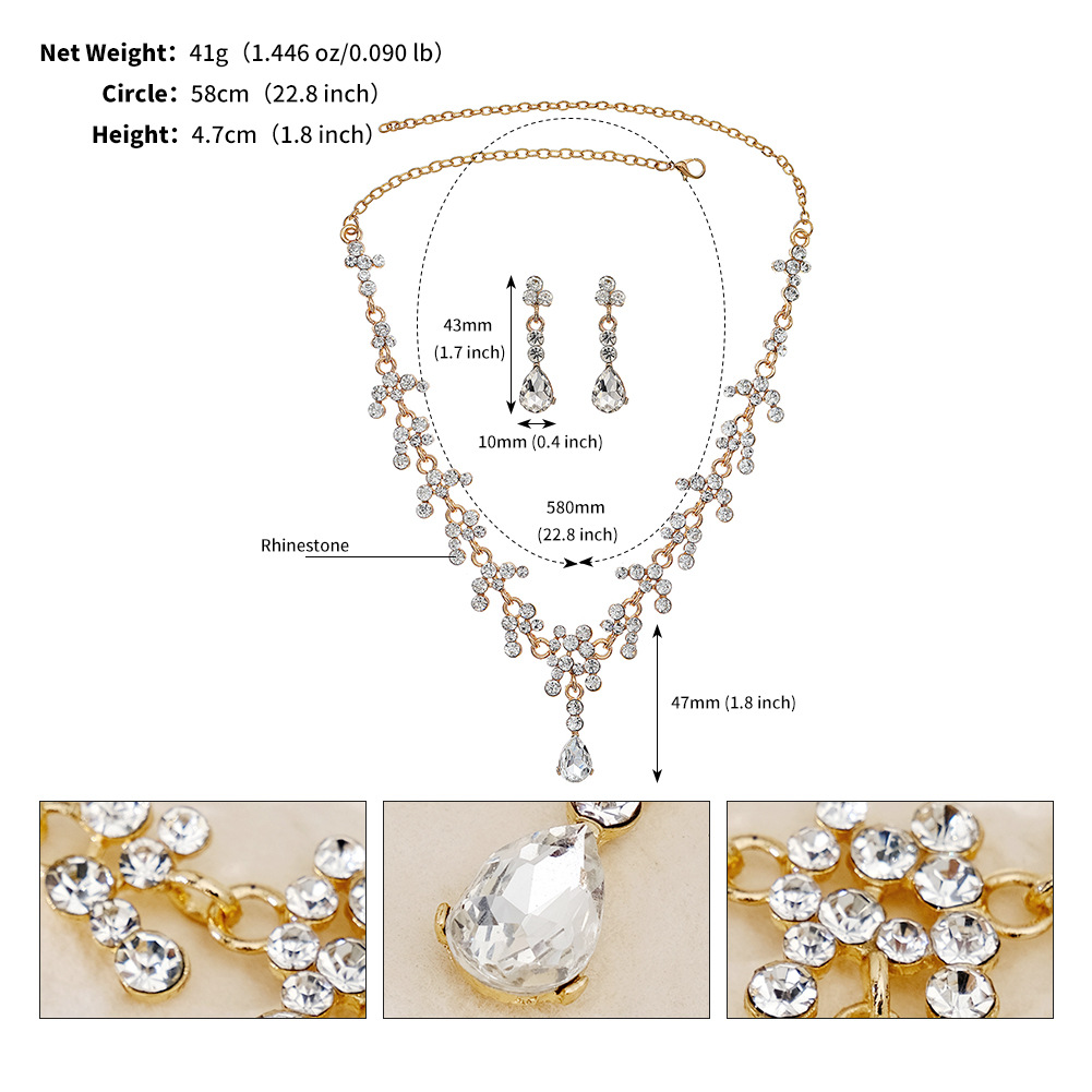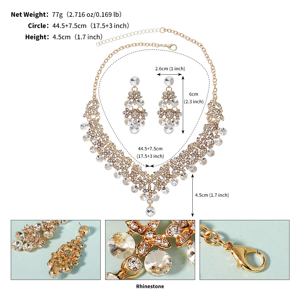 Use scenario: Bridal chain ruby necklace set alloy rhinestone earrings necklace