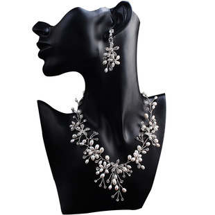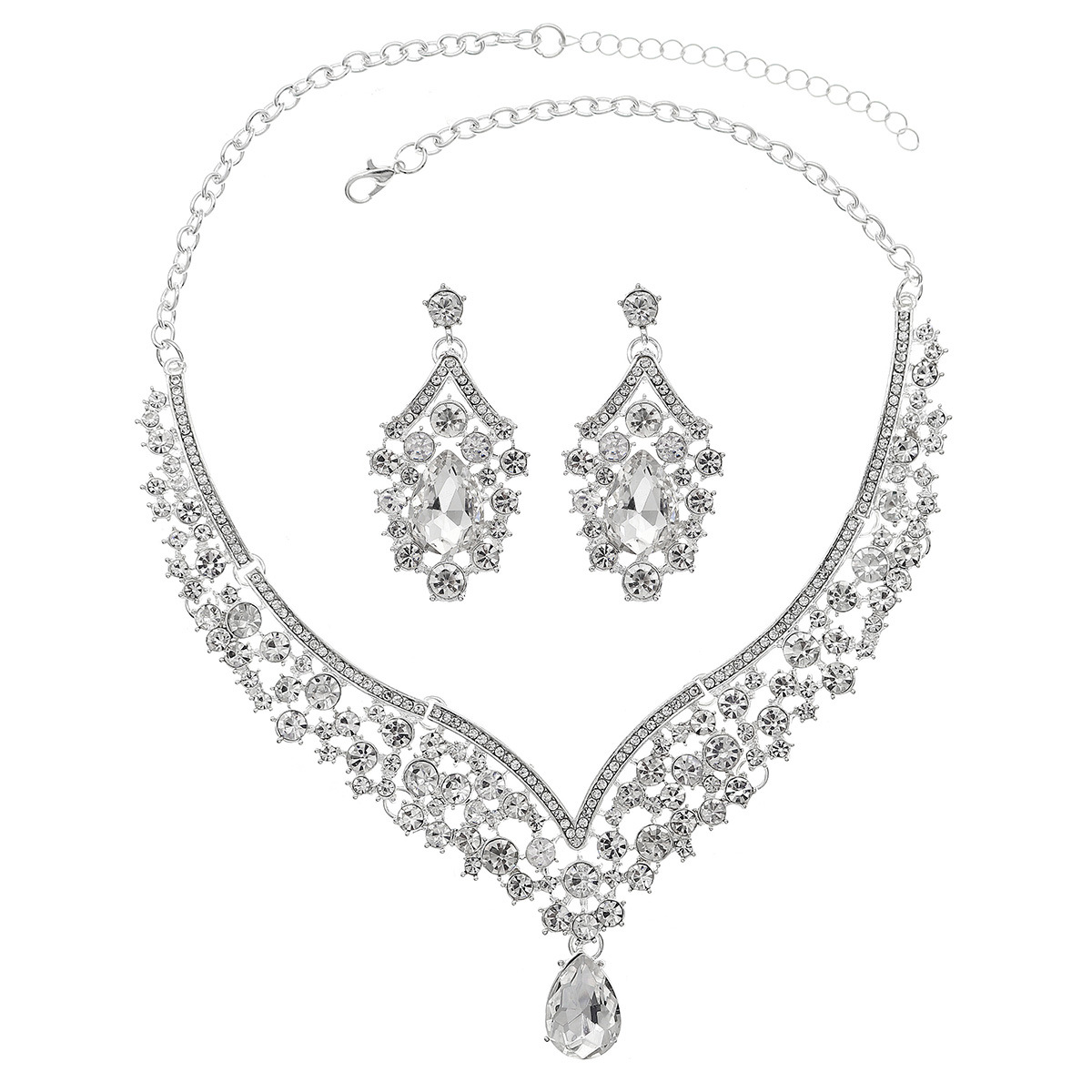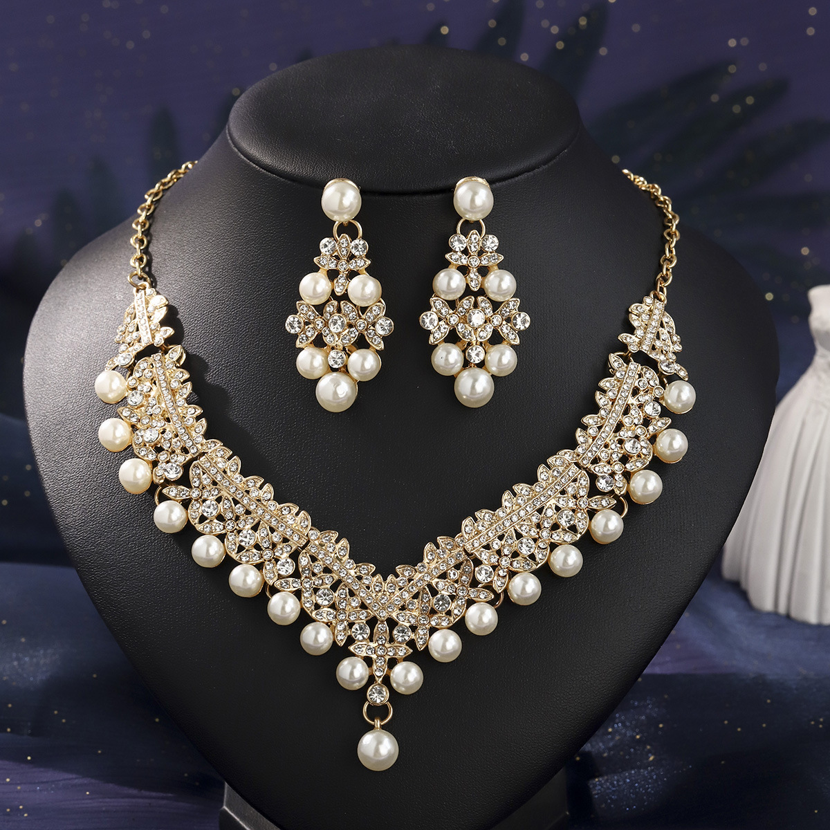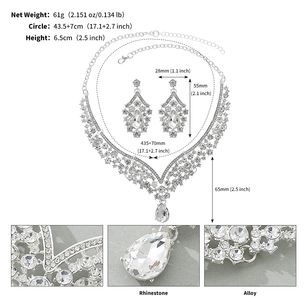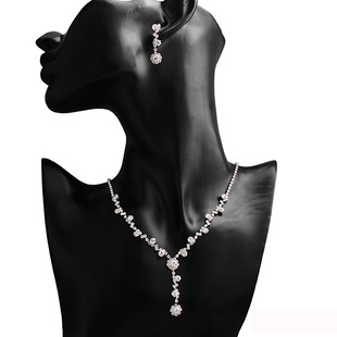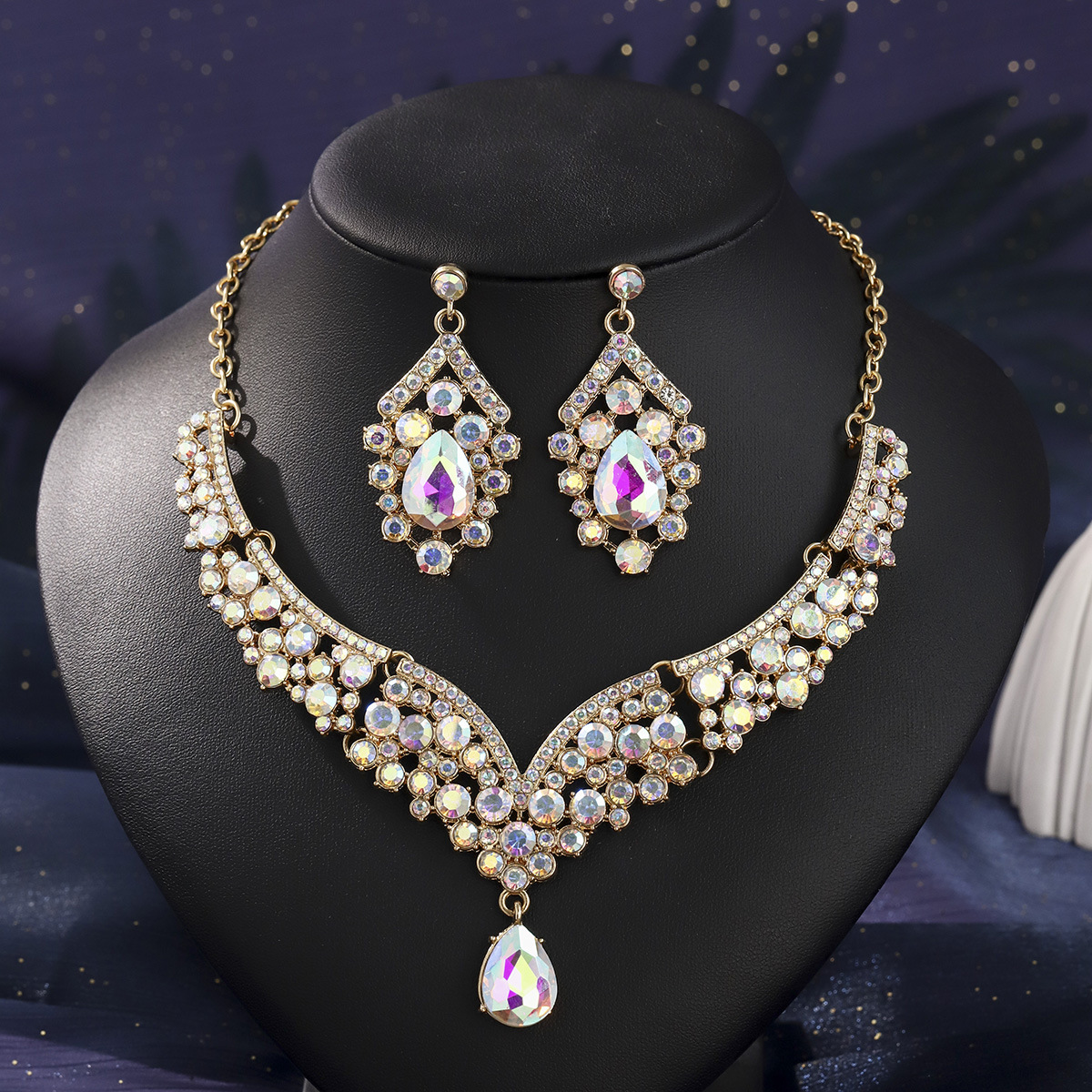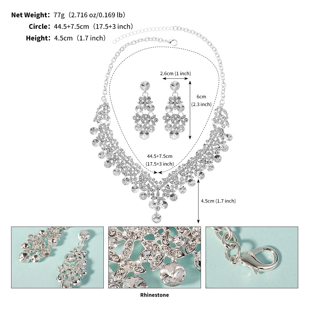 Use scenario: Bridal chain ruby necklace set alloy rhinestone earrings necklace