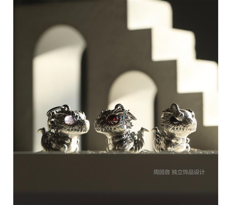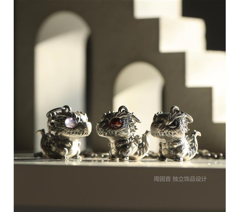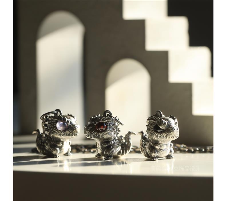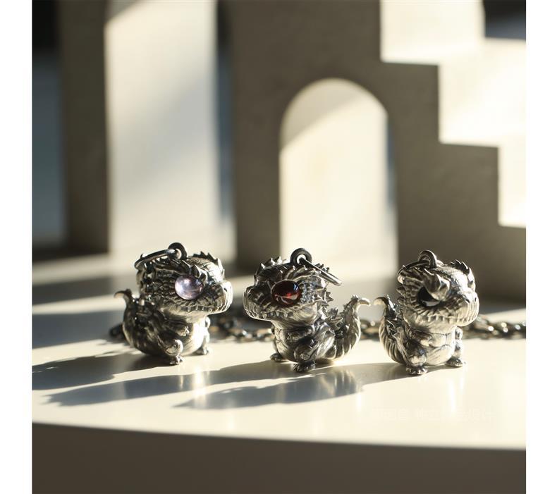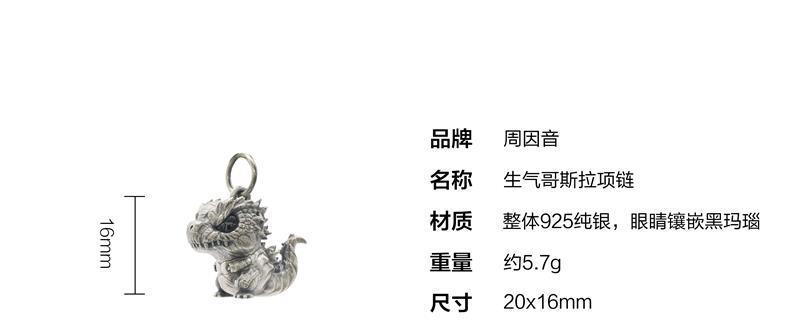 Original sterling silver vintage godzilla necklace Q version cute godzilla monster pendant men's and women's sweater chain