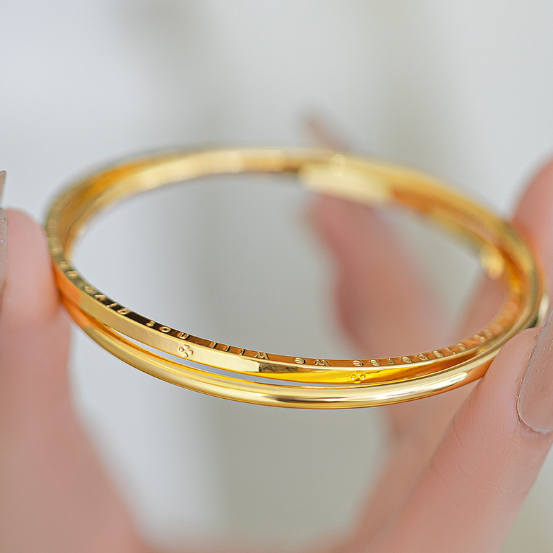 Color: Double-ring thin circle four-leaf clover english bracelet-64#