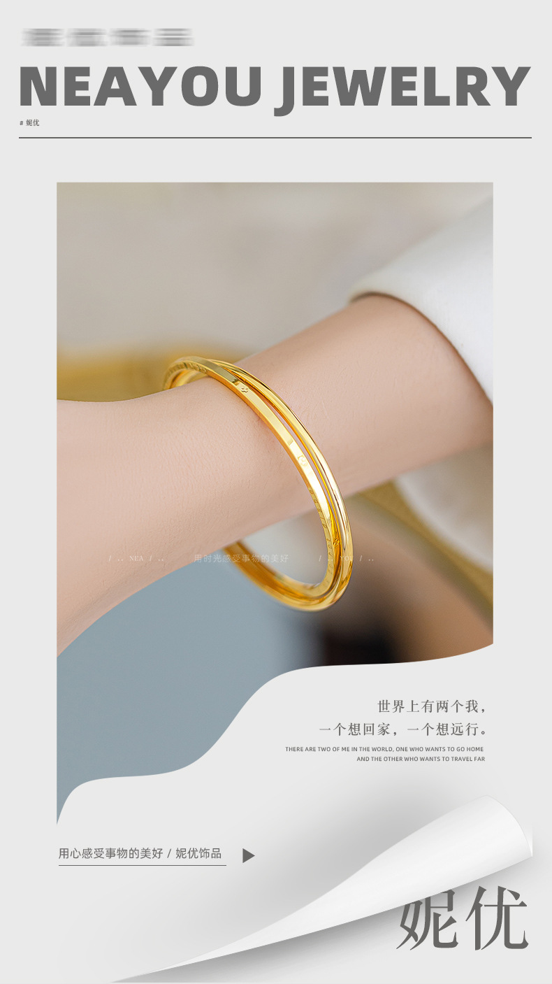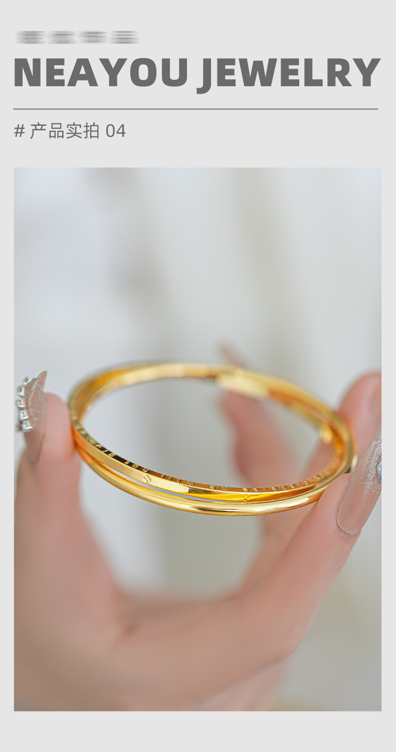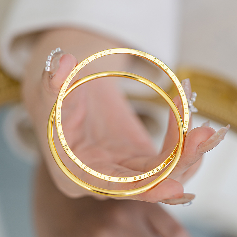 Color: Double ring thin circle four-leaf clover english bracelet-60#