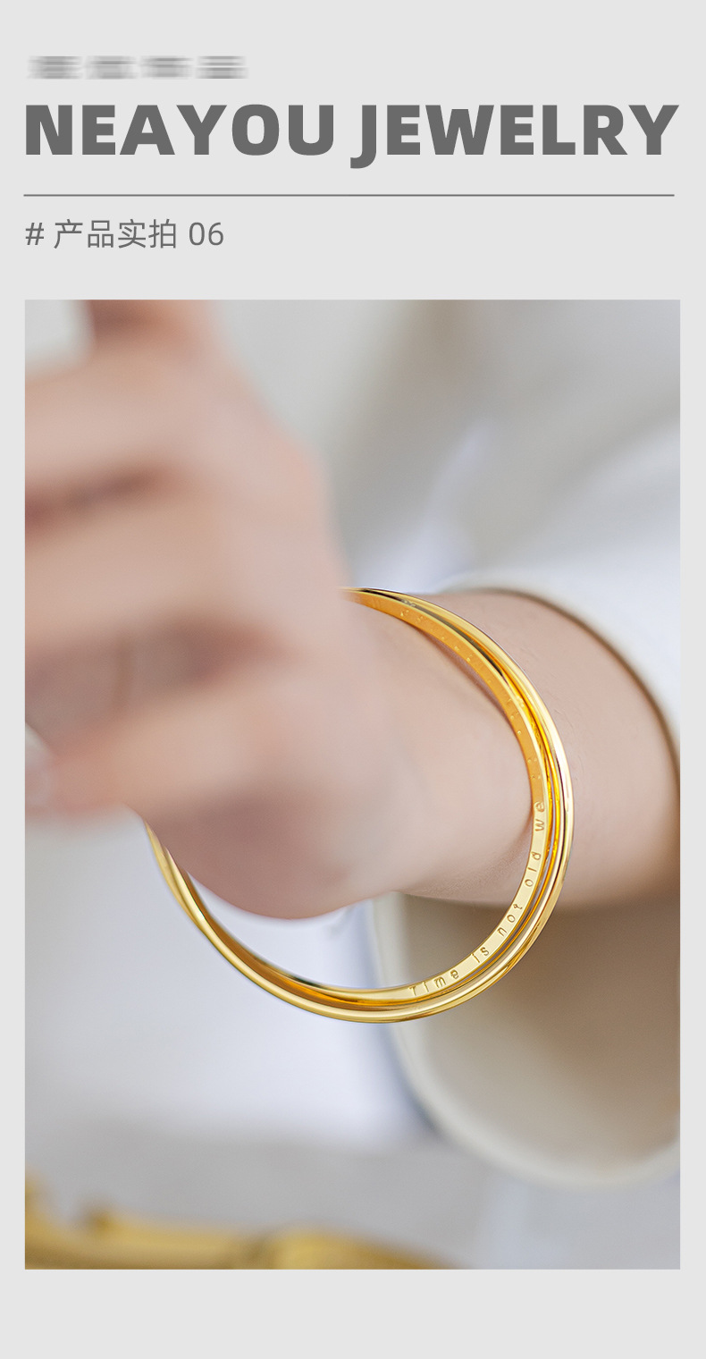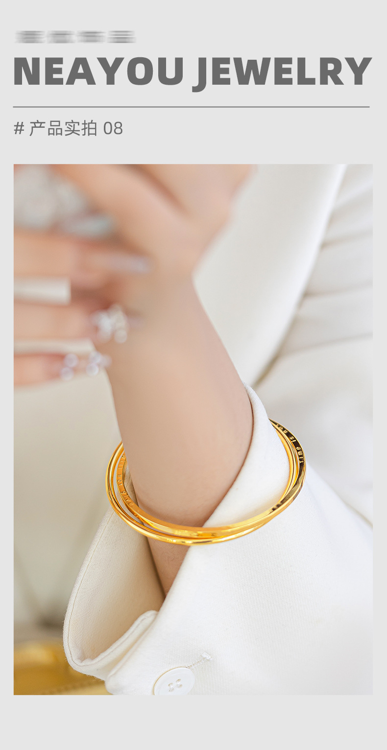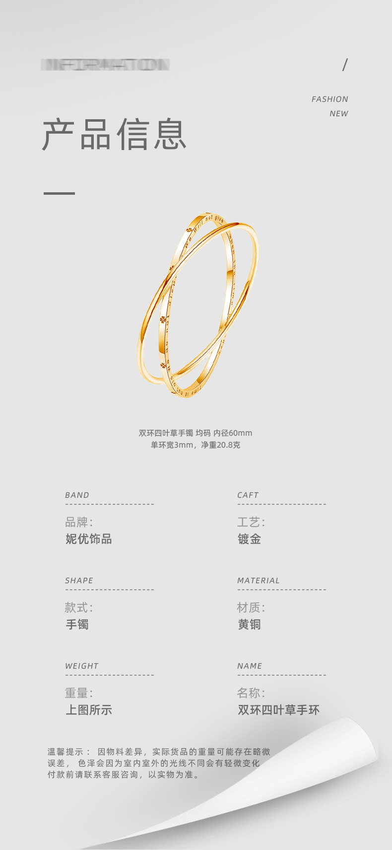 Color: Double ring thin circle four-leaf clover english bracelet-60#