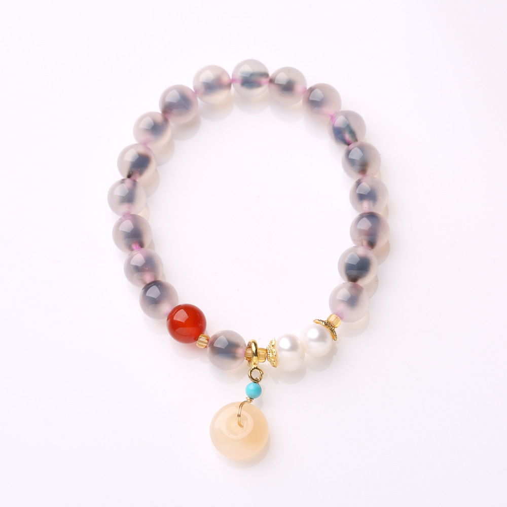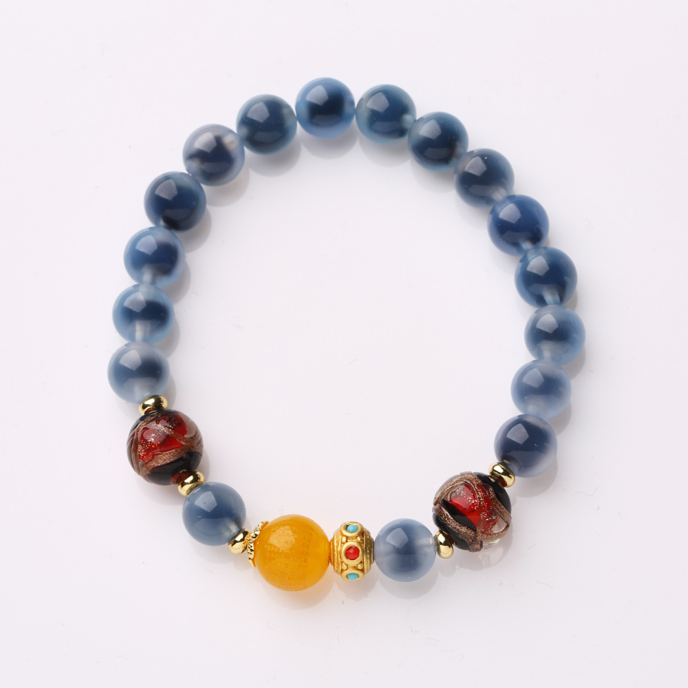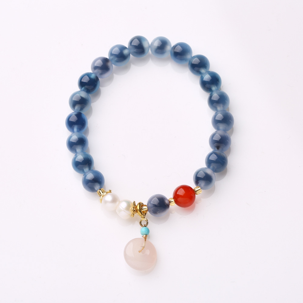 Color: Blue Heart agate bracelet peach Clover (beads)