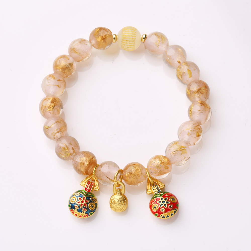 Color: Red Gold foil glaze white gold porcelain hanging gourd bracelet