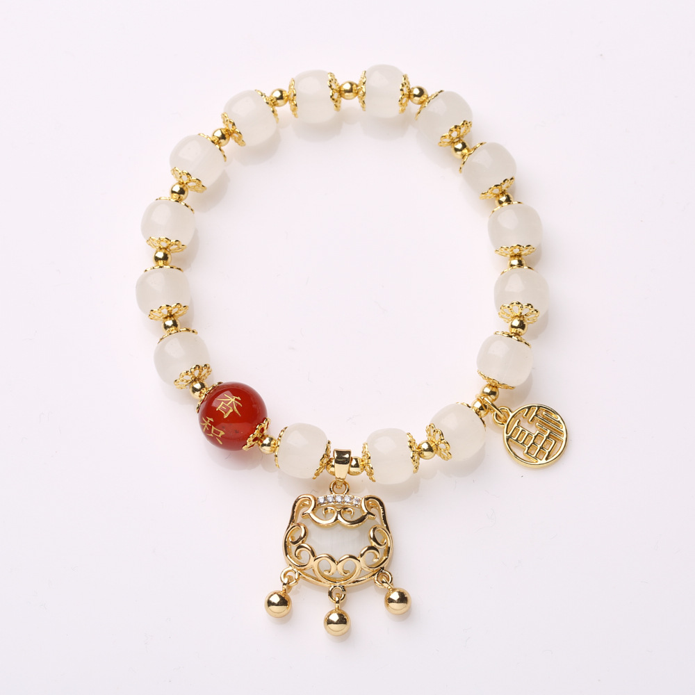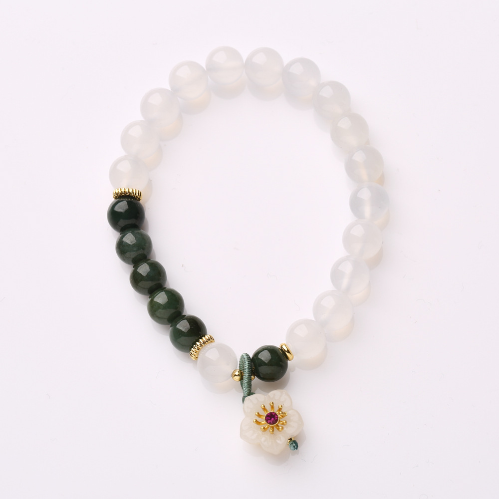 Color: 8MM white agate oil green jade bracelet hanging alloy plum blossom