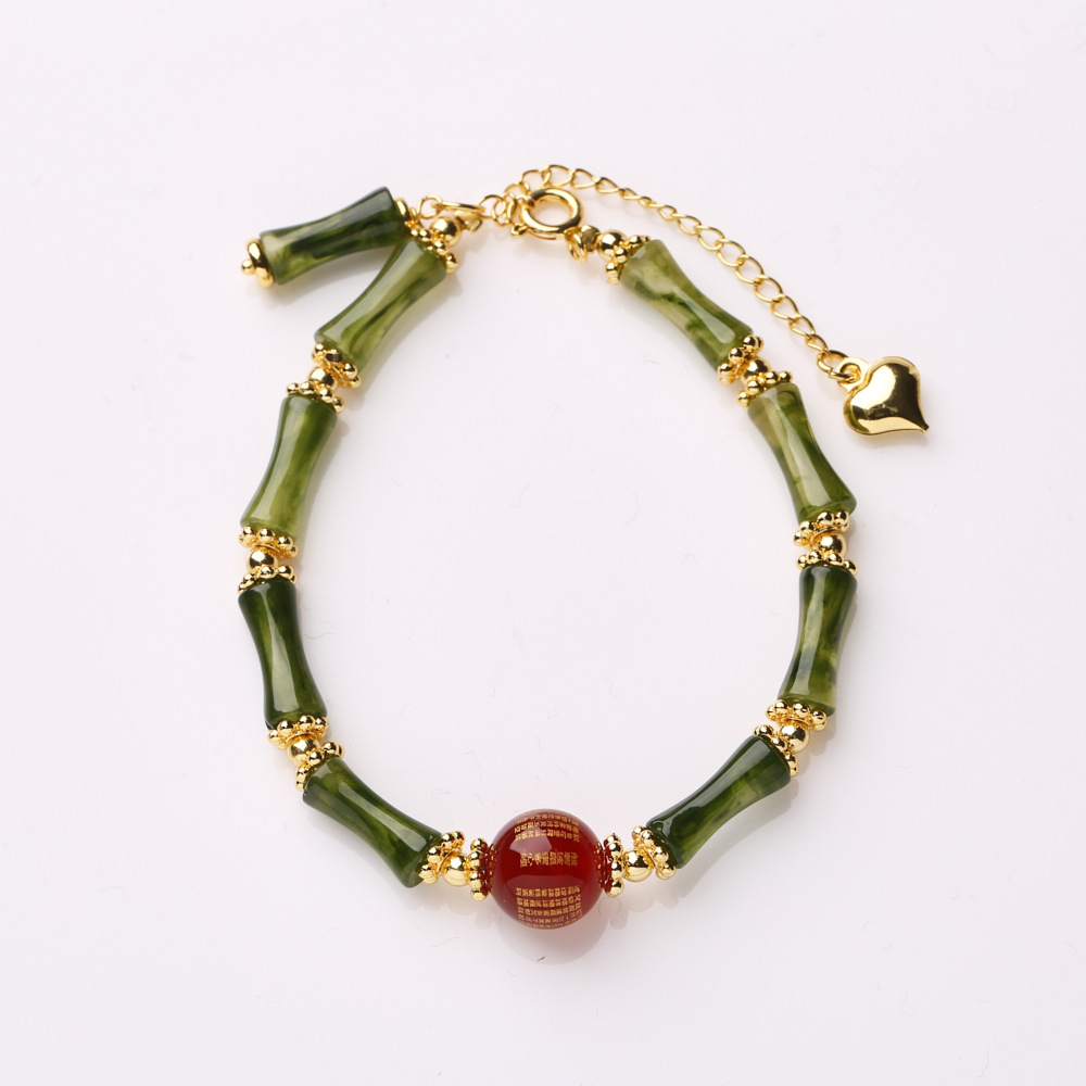 Color: New Chinese resin bamboo red agate Heart Sutra bracelet