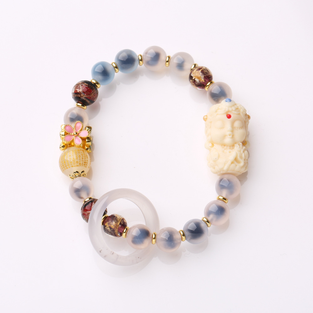 Color: Gray porcelain powder ball prayer wheel glass bracelet