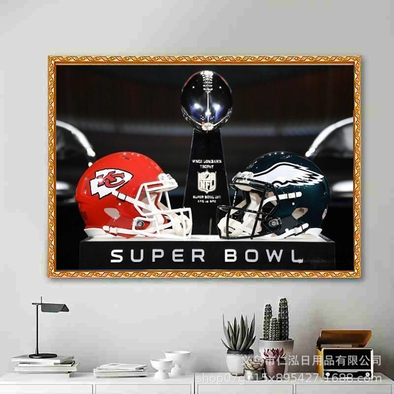 Amazon 5DDIY Diamond Painting Super Bowl Rugby Round Diamond Cross-stitch Decorative Painting Cross-border Factory Wholesale