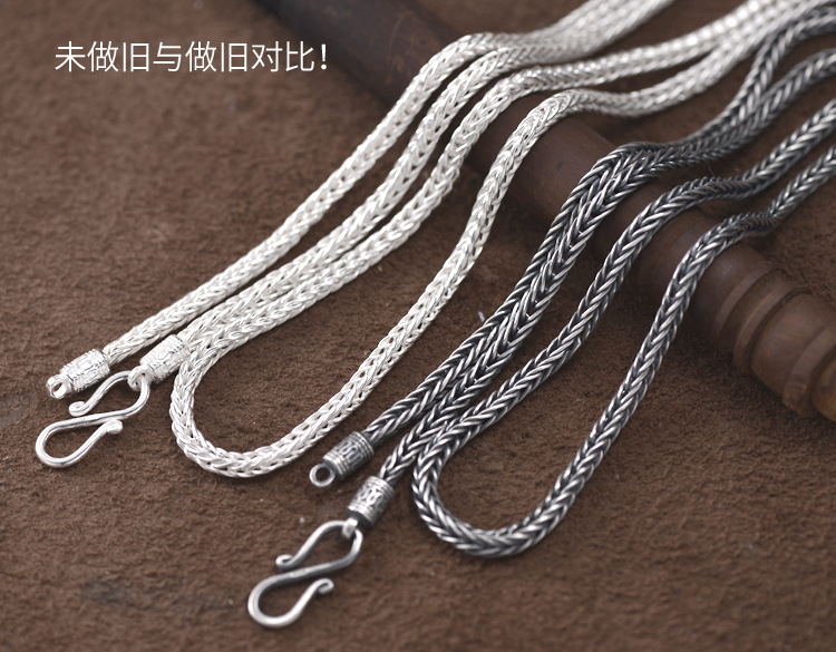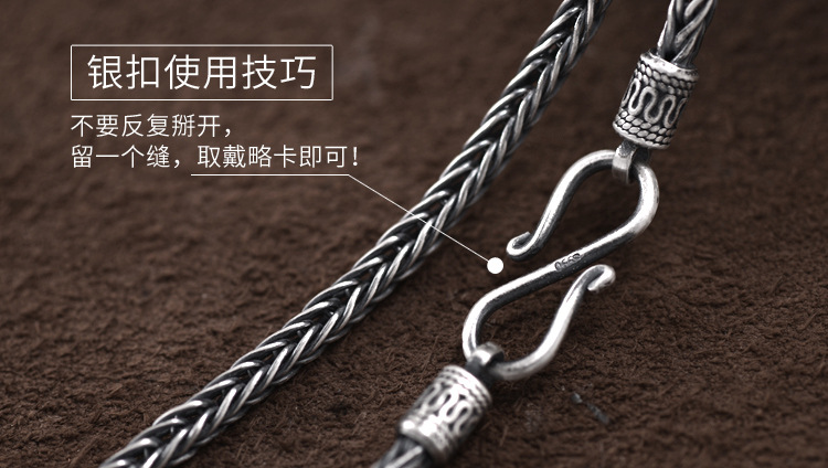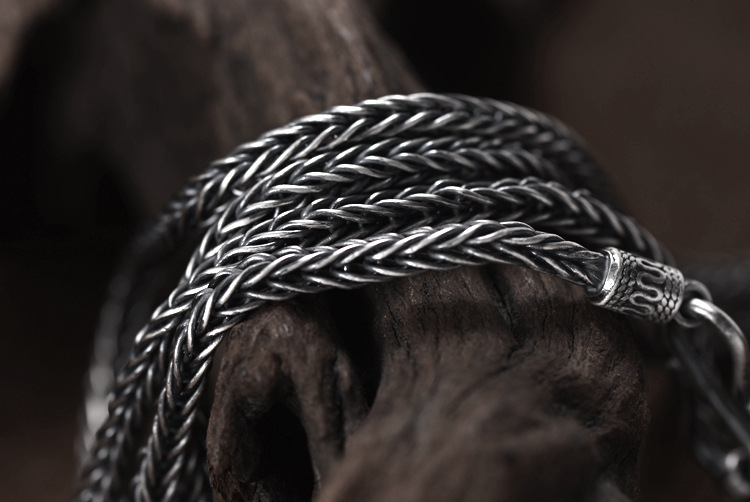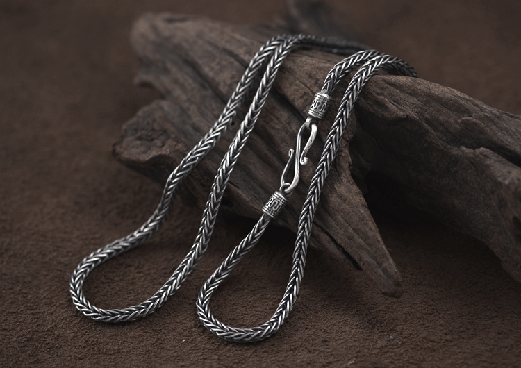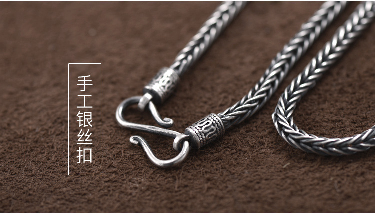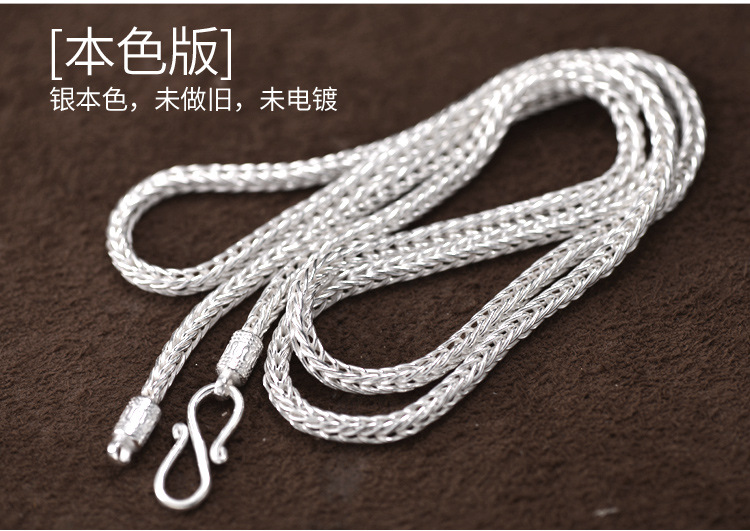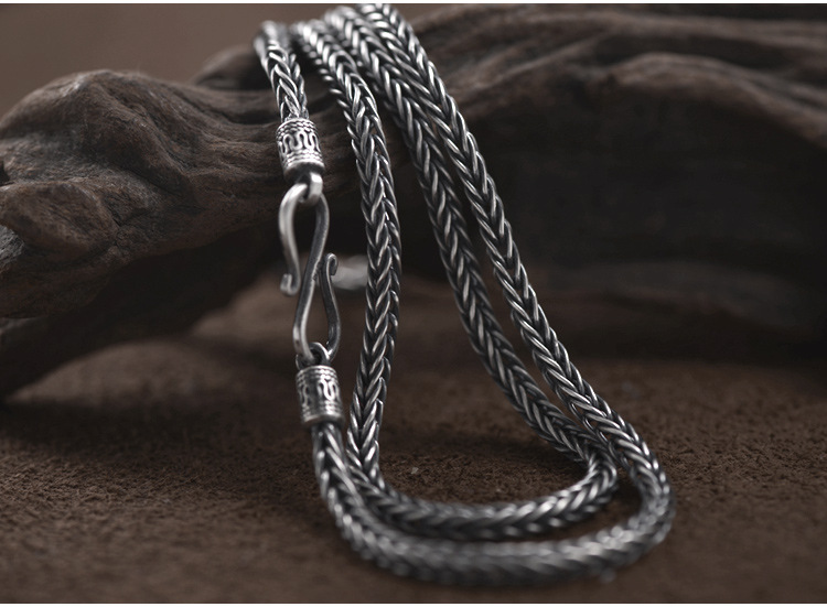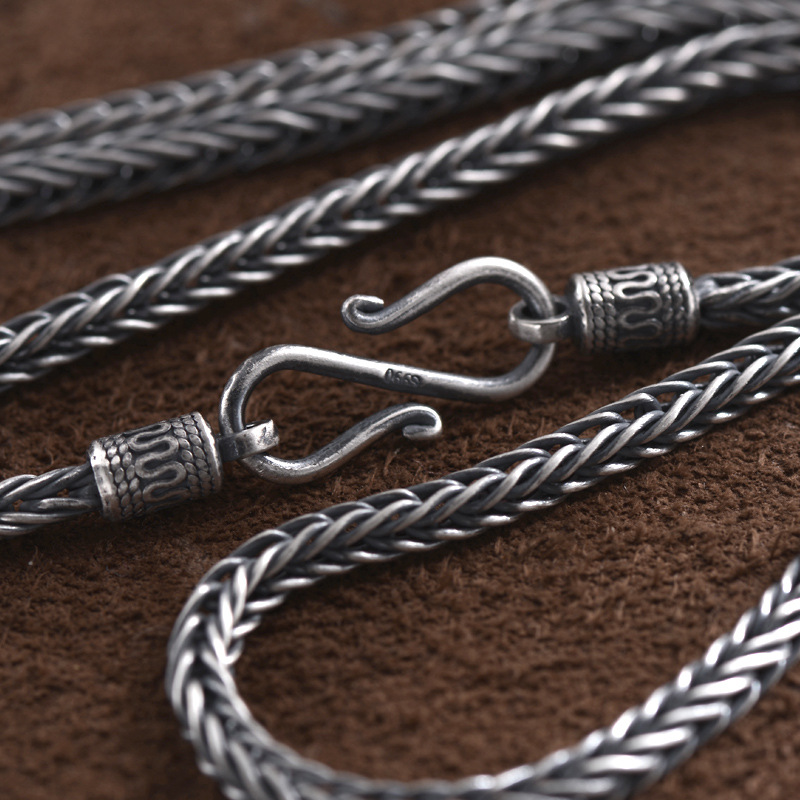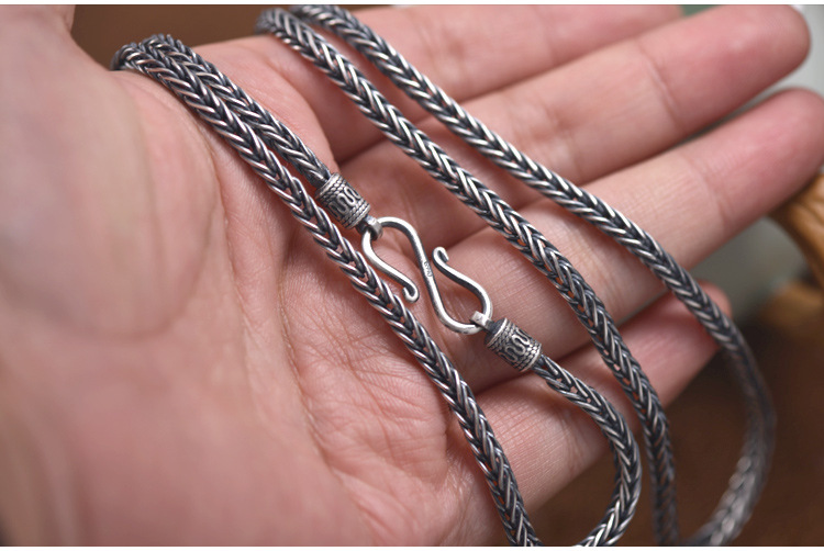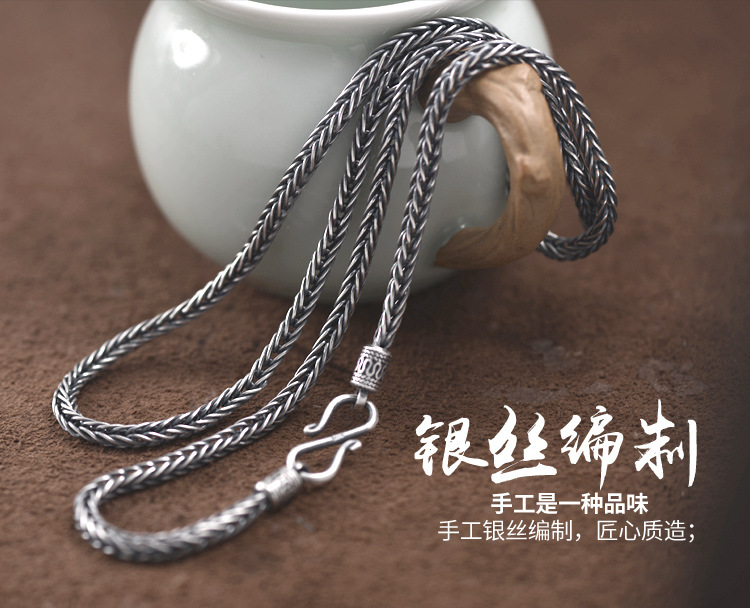 990 pure silver men's necklace snake bone chain hand-woven vintage Thai silver chain trendy top original men's jewelry 4mm