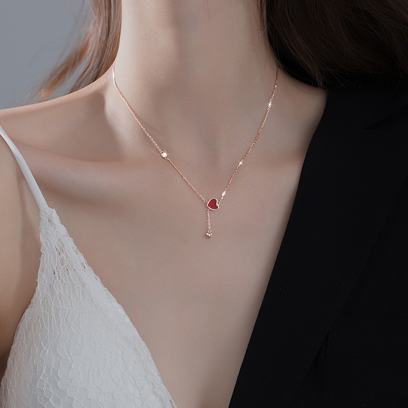 Color: Tassel Red Love necklace rose gold