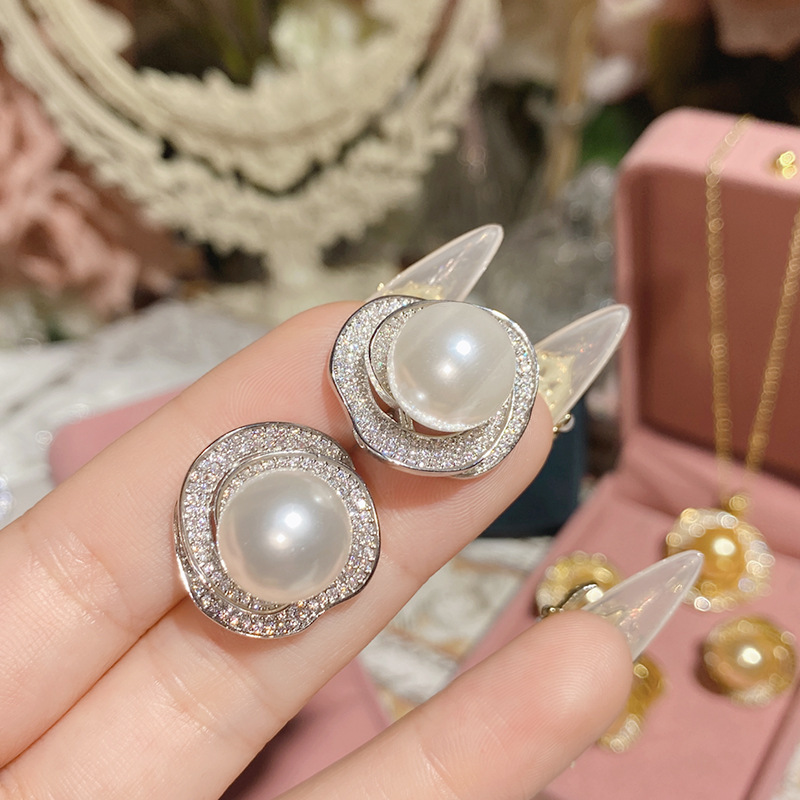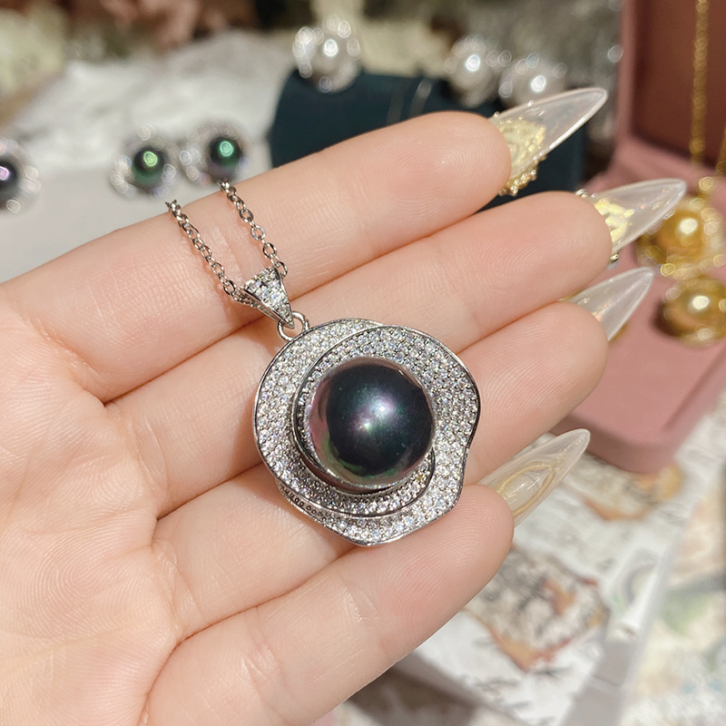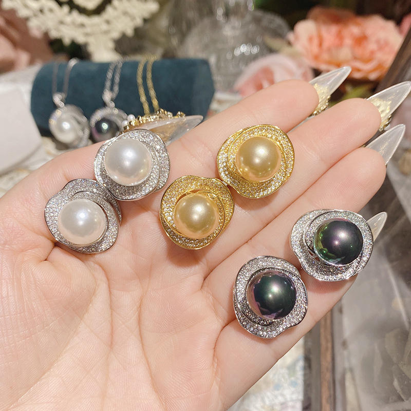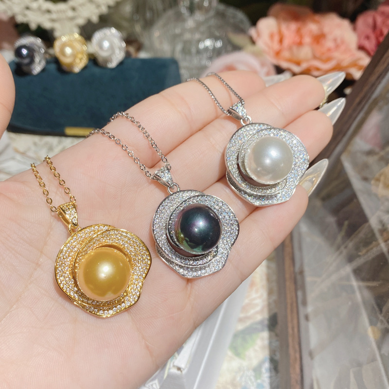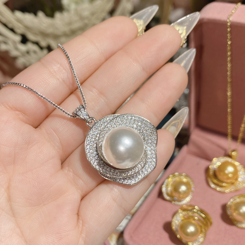 Camellia new freshwater pearl Camellia necklace pendant plated 18K gold full Diamond luxury high-grade earrings ring suit