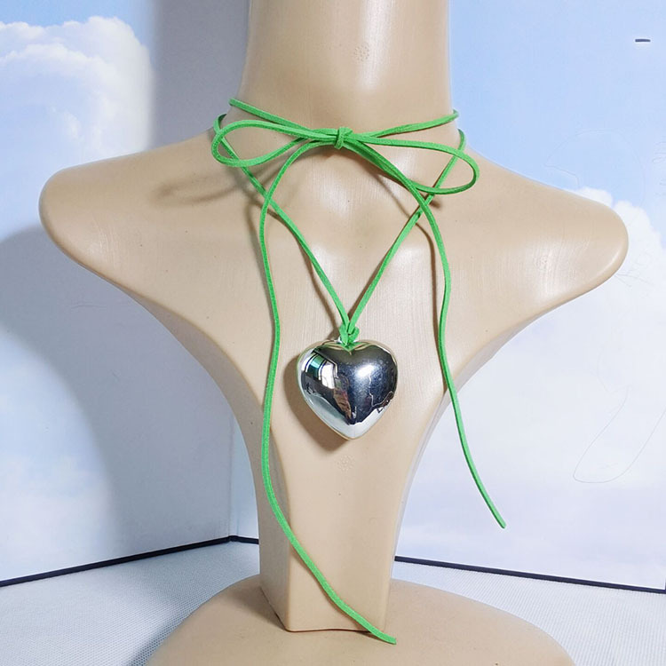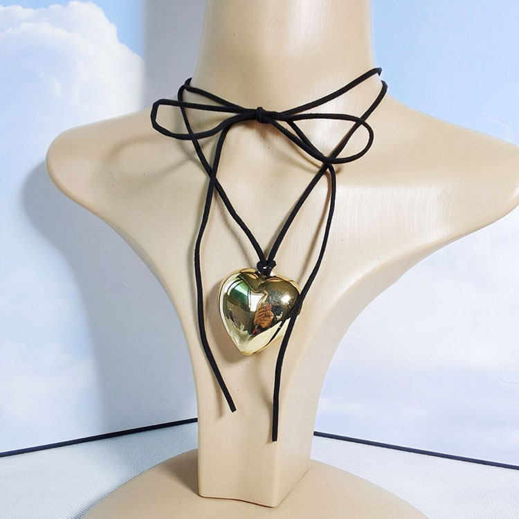 European and American Cross-Border Jewelry Pull-Out Adjustable Wax Thread Choker Necklace Velvet Clavicle Chain Big Heart Pendant Collar