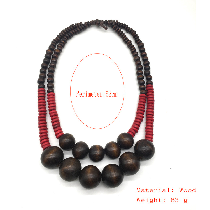 Bohemian ethnic style wood beads two-layer mixed color beach style necklace for women necklace women